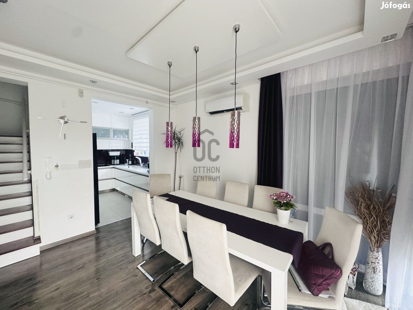 A 2018-ban épült, háromszintes, nappali + 5 szobás sorházi ingatlan közel 300 m saját kerttel rendelkezik, amely a nappaliból és az utcáról is könnyedén megközelíthető.