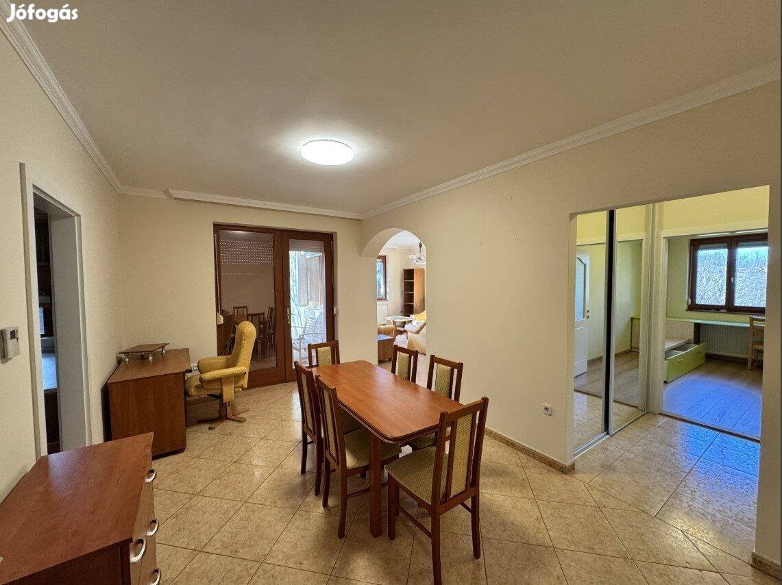 Debrecen Pallag kiemelt részén forgalomtól mentes utcában, közel a központhoz kiadó egy 2005-ben épült, felújított, 100 nm-es ház 700 nm-es telken. A ház nagy nappalival, két lakószobával, nagy, dolgozórésszel rendelkező étkezővel, beépített, felszerelt konyhával, mely tolóajtóval zárható, fürdőszobával káddal és zuhanyzóval, hatalmas gardróbbal, külön wc-vel, több beépített szekrénysorral, hatalmas fedett terasszal, körbejárható kerttel, sütőhellyel, grillezővel várja leendő lakóját, lakóit. A ház bútorokkal teljesen berendezett, de igény esetén a bútorokat a tulajdonos elszállítja. A konyhában hűtőszekrény, mikrohullámú sütő, keskeny mosogatógép, gáztűzhely, elektromos sütő, vízforraló, alap eszközkészlet áll rendelkezésre. A konyhához tartozik egy állvánnyal ellátott nagyméretű spájz. A fűtést újonnan felszerelt modern, halk gázcirkó kazán biztosítja, padlófűtéssel, a szobákban és a fürdőszobában radiátorral. A mosókonyha egy külön helyiség, ahol samsung mosógép és ruhaszárító állvány használható. A bejáratról az előszobába jutunk, ahol mennyezetig beépített szekrénybe lehet pakolni, innen nyílik a mosdóval és szekrénnyel ellátott külön wc helyiség. Az ablakok redőnnyel felszereltek.