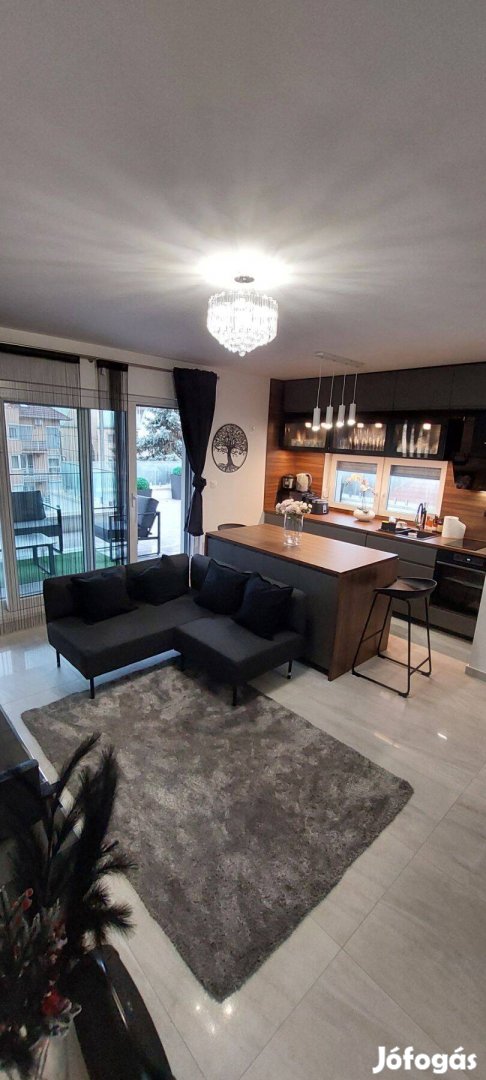 A szigetelt, téglaépítésű, 7 lakásos társasház 2.emeletén található ingatlan 69nm-es, elegáns, nappali + 2 szobás, amerikai konyhás. A geotermikus fűtésrendszerrel és menyezethűtéssel ellátott exkluzív lakás eletromos redőnnyel, műanyag nyílászárokkal és szúnyoghálóval felszerelt, minden igényt kielégítő bútorozottsággal és gépesítéssel ellátott.