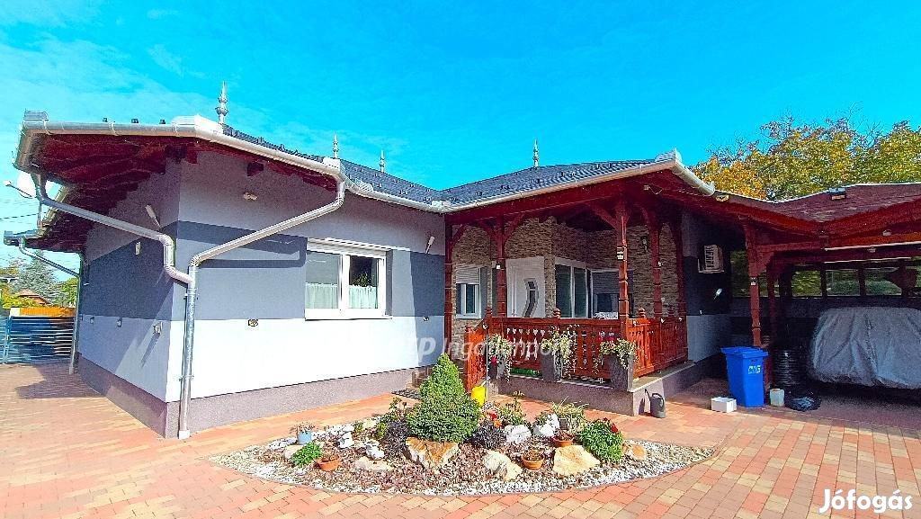 Eladó gyönyörű exkluzív, gépesített-bútorozott családi ház Hevesen!!! Heves városa a Mátra és az Alföld találkozásánál helyezkedik el, így kellemes, vidéki hangulatot áraszt, ugyanakkor kiváló közlekedéssel rendelkezik, autóval könnyen megközelíthető Eger, Gyöngyös vagy Jászberény, de akár a főváros is egy órán belül elérhető. Az ingatlan a város egyik legkedveltebb központi, mégis nyugodt és rendezett részén található. A környék hangulatos, zöldövezeti jellegű, a szomszédság csendes, gondozott portákkal és barátságos lakókkal. A közelben minden megtalálható, ami a mindennapi élethez szükséges: iskola, óvoda, bolt, gyógyszertár, buszmegálló, orvosi rendelő, valamint a városközpont is néhány perc sétával elérhető. Itt kínálunk megvételre egy 105 m2-es családi házat, amely ékköve egy 705 m2-es pazar teleknek. A ház magába foglal 3 szobát, amerikai konyhás nappalit és 2 fürdőszobát. A ház 2019-ben kapott teljes körű felújítást, ebben értendő: új tetőszerkezet - kanadai tegola héjazat, új szigetelt födém szerkezet, új villanyvezeték, vízvezeték, csatorna, aljzat- víz szigetelés. A ház 10 cm-es szigeteléssel van ellátva, valamint új műanyag nyílászárók, elektromosan működő távirányítós redőnyök, riasztórendszer. A fűtésről a legkorszerűbb gázcirkós kazán, (a nappaliban és a fürdőszobákban padlófűtés, a szobákban lapradiátorokkal ellátva) a hűtésről pedig minden helyiségben hűtő fűtő klíma gondoskodik. Ezen felül a beépített bútorok, gépesített konyhabútor és minden más berendezés is a vételár részét képezik. A házhoz tartozik még egy 9 m2-es pince, egy 15 m2-es zárt faház ami alkalmas finn szauna kialakítására is. Valamint 3 autó beállására alkalmas fedett tegola tetővel ellátott garázs. Minden egyedi kivitelezés és elgondolás. A víz elvezetés a csatornából, a térkő és udvar alatt kivitelezve, ebből az esővízből működik a gyepszőnyeg és az egyéb növények öntözése. Az udvar teljes egészében viakolor térkővel burkolva, nagy előkertel, 2 db sziklakerttel, elől-hátul elektromosan nyíló kapuval, lugassal, bográcsozó-grillező hellyel. Jöjjön és nézze meg velem ezt a csodálatos ékszerdobozt és én garantálom hogy szerelem lesz első látásra! Ingatlanirodánk teljes körű ügyintézéssel, kedvező hitelkonstrukciókkal, ügyvédi háttérrel, energetikai tanúsítvánnyal segíti Önt a zökkenőmente vásárlásban.