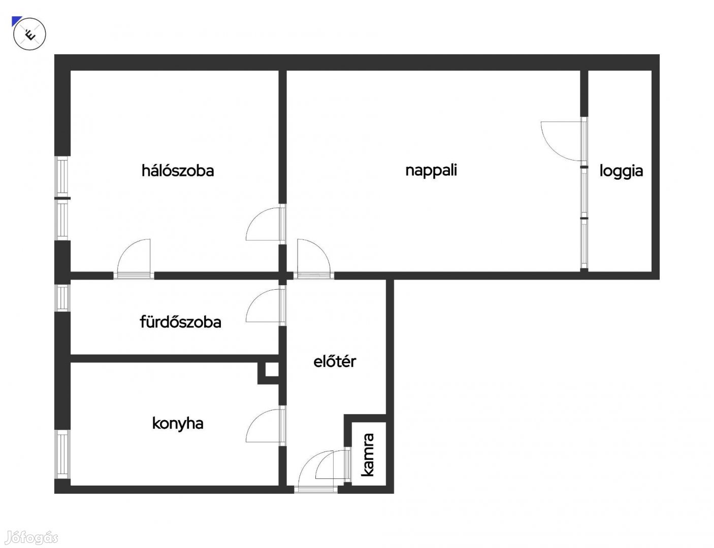 56 m2-es, kétszobás lakás erkéllyel és saját földszinti tárolóval. A lépcsőház tiszta, rendezett, lift azonban nincs.