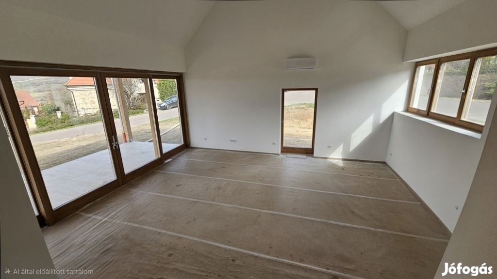 Heves megye, Felsőtárkány, Várhegy lakópark, igényes alapanyagokból kivitelezett, újépítésű, 98 m2-es ikerházrész, 1000 m2-es telekkel eladó. Az ingatlant amerikai konyhás nappali, egy egész és egy félszoba, kamra, fürdőszoba, WC, előszoba, panorámás terasz (20 m2) és gépkocsibeálló (26 m2) alkotja. Az építmény nem klasszikus ikerház, előnye, hogy a két rész közös falszakasszal nem rendelkezik, a gépkocsibeállónál érintkeznek. A tartószerkezet 15 cm-es szigeteléssel ellátott, 30 cm-es Leier téglákból épült, míg a válaszfalakhoz 10 cm-es Ytong blokkokat használtak. A hőszigetelt tető héjazata Bramac cserép. Egyedi, borovi fenyőből készült ablakait 3 rétegű üveggel látták el. A meleget, padlófűtésen keresztül Ariston hőszivattyús rendszer biztosítja. A nappaliban egy Midea típusú hőszivattyús klíma növeli a komfortérzetet. Kialakításának, méretének és elhelyezkedésének köszönhetően ideális otthona lehet akár többgyermekes családnak is. Felkeltették érdeklődését a leírtak? Egyeztessünk egy személyes megtekintés lehetőségéről! Ingatlanirodánk ügyvédi háttérrel, babaváró hitel, CSOK plusz, valamint kamatkedvezményes hitel ügyintézésével támogatja ügyfelei ingatlanvásárlását!