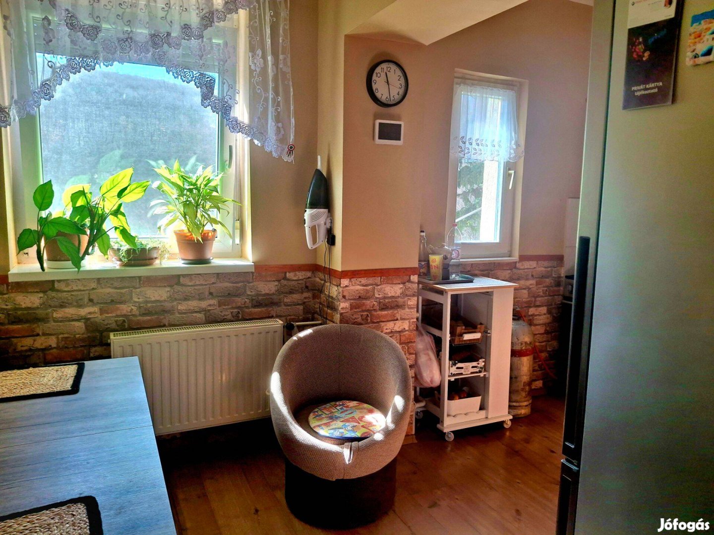 Ezen a csodálatos fekvésű településen eladó ez a 3 szobás ,remek elrendezésű , szép állapotú családi ház gyönyörű környezetben. Az ingatlan lakáson belül 2 szintes.. A 80 nm és lakórész bővítésre során került össze nyitásra az alagsorban kialakított fürdő-wc , valamint egy közel 20 nm-es helyiség, ahol kényelmesen megfér egymással a kazánház, mosókonyha és vendégszoba. Van egyébként az alagsorban még egy külön bejáratú helyiség, ami már pinceszintre megy, tárolásra kiválóan alkalmas. Ház remek állapotban van, a tető pár éve került felújításra, a nyílászárók korszerűek, a fürdőszobát 1 éve újították.A gázkazán fűtés mellett, a nappaliban beépítésre került egy kandalló, valamint klímák is gondoskodnak a ház optimális hőmérsékletéről. A kiváló tájolásnak köszönhetően reggeltől, egészen késő estig benapozott, világos a ház. A telek nem túl nagy , de valami egészen csodálatos látvány ami elénk tárul.