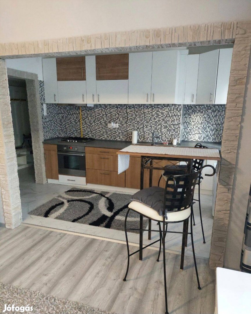 Szolnokon a Városmajor úton, csendes környezetben, igényesnek kiadó egy magasföldszinti, 40 nm-es, teljeskörűen felújított, parkosított utcára néző kislakás.