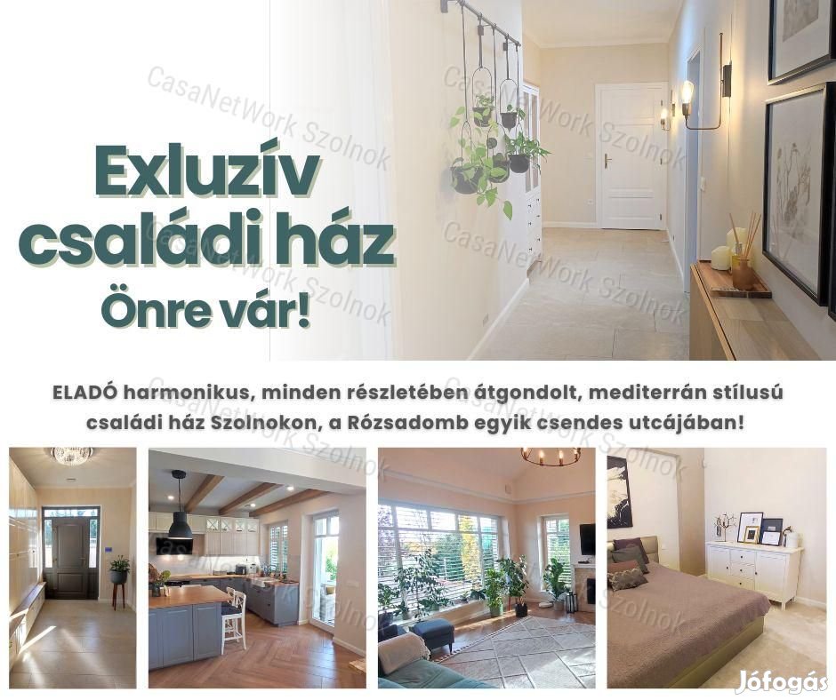 szolgálja  igazi otthon a Rózsadomb szívében.Amennyiben ez az eladó szolnoki exluzív családi ház felkeltette érdeklődését, kérem hívjon bizalommal és tekintse meg, nem fog csalódni!/A hirdetésben szereplő információk a megbízótól kapott adatok alapján készültek./Irodánk teljes körű szolgáltatással áll ügyfelei rendelkezésére: hitelügyintézés, ügyvédi szolgáltatás, ingatlan értékbecslés, energetikai tanúsítvány készítése.CasaNetWork - Ingatlanban otthon vagyunk!