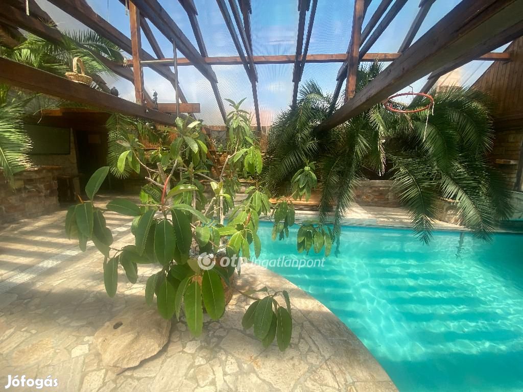 Kiváló elosztású, melyben előszoba, 2 szoba, nappali közlekedő, étkező, konyha, fürdőszoba, mellékhelység, szauna, kazánház és külön 75nm wellness részleg fedett mediterán hangulatú medencével. Gyönyörűen ápolt kert tartózik az ingatlanhoz. A kinti kerti sütőgető rész kerti pavilonnal nyújthat kikapcsolódást.