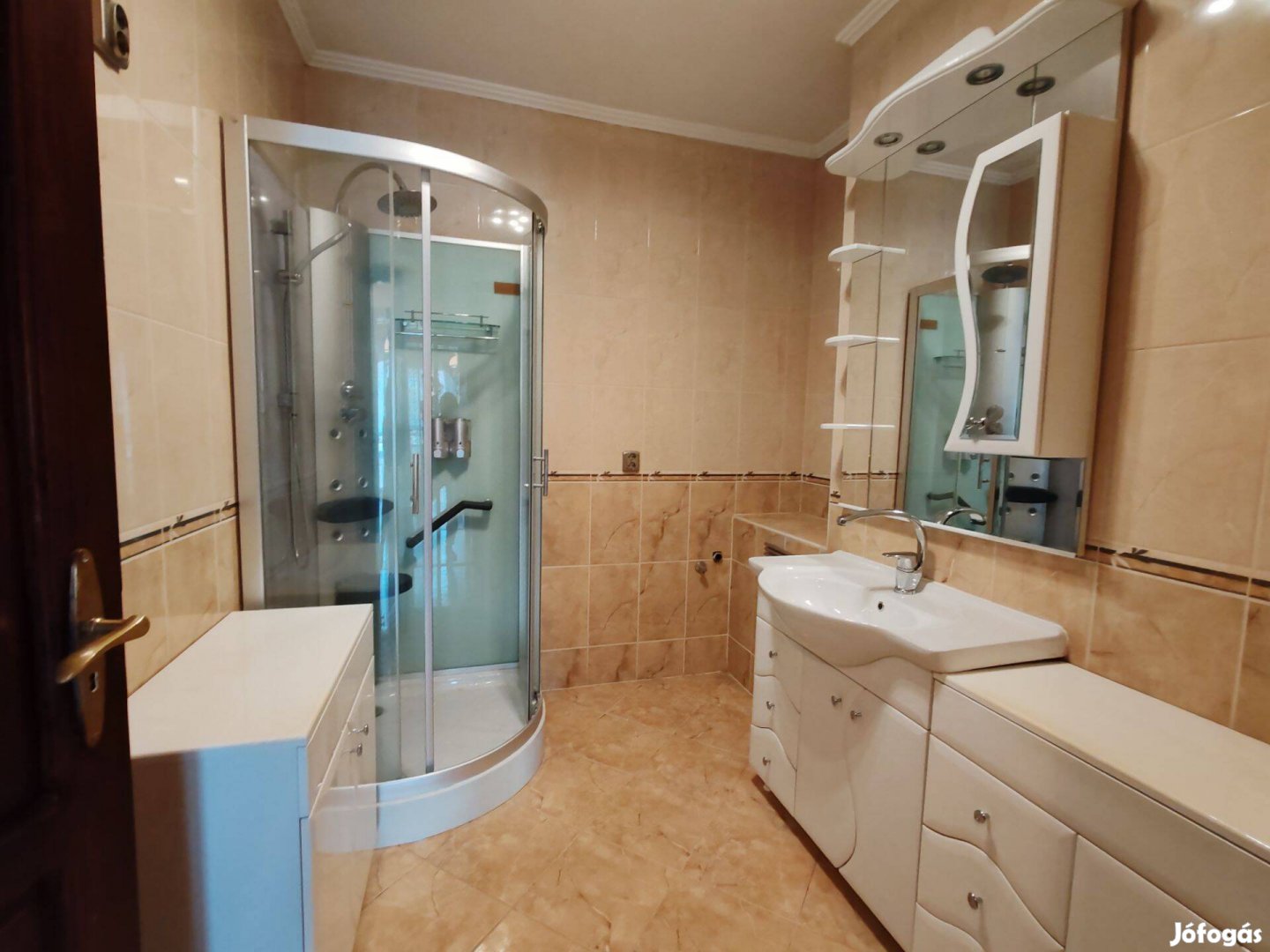 - a lenti fürdőszobában zuhanykabin lett kialakítva, a tetőtéri nagy méretű fürdőszobában fürdőkád és zuhany is található