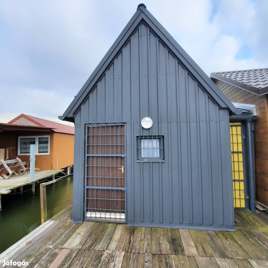A Bokodi erőműi horgásztó oroszlányi oldalán A-209/B horgászstég eladó. A stég 65 m2-es, rajta egy 17 m2-es, két szintes könnyűszerkezetes faház. Áram van. A stég 80 m-re van a parttól. A parton saját 50 m2-es bográcsozó hely asztallal, padokkal, wc-vel. A stég előtt 2,3 m a vízmélység, jó horgászási lehetőség van a tó közepe és a part irányában is.