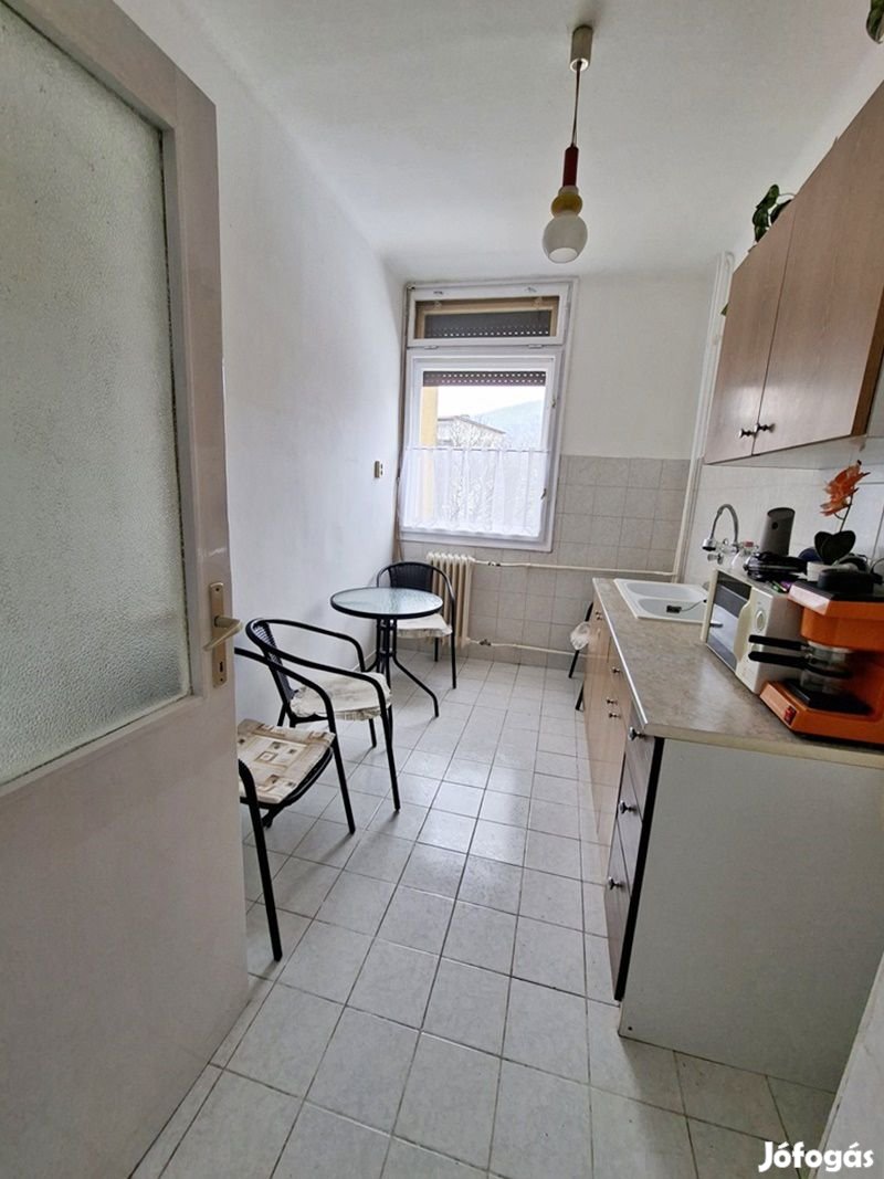 A lakás elosztása: konyha, két kamra, melyek közül az egyik külön WC kialakítására is alkalmas, fürdőszoba, egyben nyíló nappali és szoba, valamint beépített szekrény. A konyha és a fürdőszoba ablakából szép kilátás tárul elénk, ahonnan a Turul madár is látható.