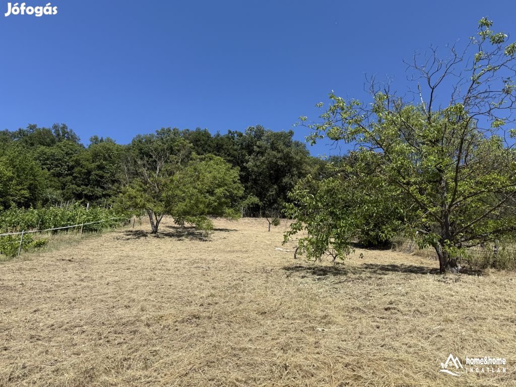 A telek dombos fekvésű, gyönyörű panorámás kilátással.