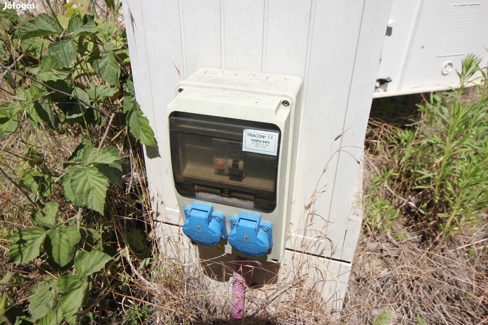A körbe kerített telken belül földkábeles kiállással 32 Amper áll rendelkezésre!
