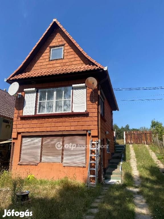 ELADÓ! Nógrád megyében, Budapesttől 80 km-re fekvő Balassagyarmat - Nyírjes üdülőövezetben eladásra kínálunk egy 1976 -ban sóskúti téglából épült, 55 m2 összkomfortos, tulajdoni lapján kivett hétvégi ház udvar besorolású ingatlant. Az ingatlan korának megfelelő állapotban van. A házban kialakított helyiségek felsorolása: földszint: nappali 13 m2, konyha 3,5 m2, fürdőszoba wc -vel 3 m2, előszoba 7 m2. Tetőtér: félszoba : 7 m2, szoba 18 m2. A rendezett gondozott 249 m2 telken kialakításra került egy 3 m2 csempe burkolatú medence melyet a kút teljes egészében ellát vízzel. Az ingatlan fűtése cserépkályhával és gáz-cirkóval történik központosítva van, radiátoros hőleadással. Csatorna nincs. Zárt rendszerű szennyvíztároló van használatban. Áram : nappali - éjszakai. Víz : hálózati. Nyílászárók: hagyományos fa szerkezetű. A vásárlást a pihenés, kikapcsolódás, gyönyörű erdős környezet mellett igazán befektetési céllal is ajánlom, mivel a térségben folyamatos fejlesztéseket eszközölnek, és ez jelentősen emeli az ingatlanok piaci értékét. Az ingatlan per-, igény,- és tehermentes, mely a vételár megfizetését követően azonnal birtokba vehető. Ha megtetszett az ingatlan, keressen, tegye meg a vételi ajánlatot, hogy már idén is élvezhesse a ház, és a Nyírjes minden szépségét. Az OTP Bankcsoport teljes körű ügyintézéssel áll az eladók és a vevők rendelkezésére! A kínálatunkból választott ingatlan finanszírozásához kedvezményes hitel-konstrukciókat, lakástakarék-pénztári megoldásokat kínálunk. Az adásvételi szerződés megkötéséhez igény szerint megbízható ügyvédi közreműködést biztosítunk, és segítséget nyújtunk az adásvételhez kapcsolódó ügyek intézéséhez. Hívjon bizalommal!