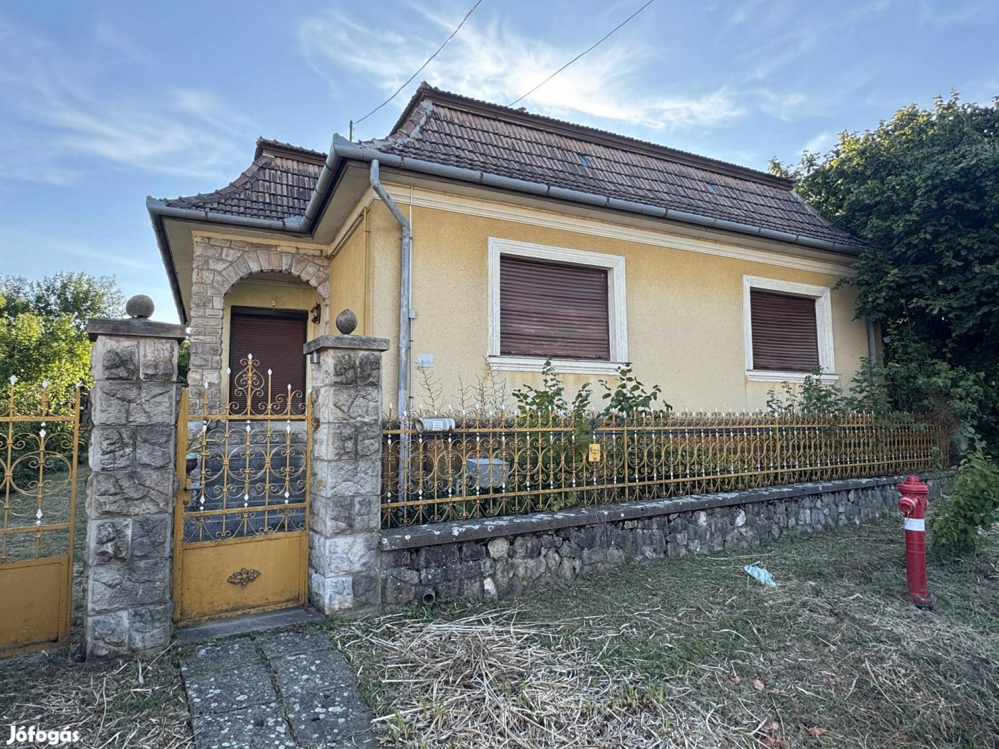 Garázs és mellék épületek tartozik hozzá. Nyílászárók még fából vannak, fa födémes cserép fedéssel.