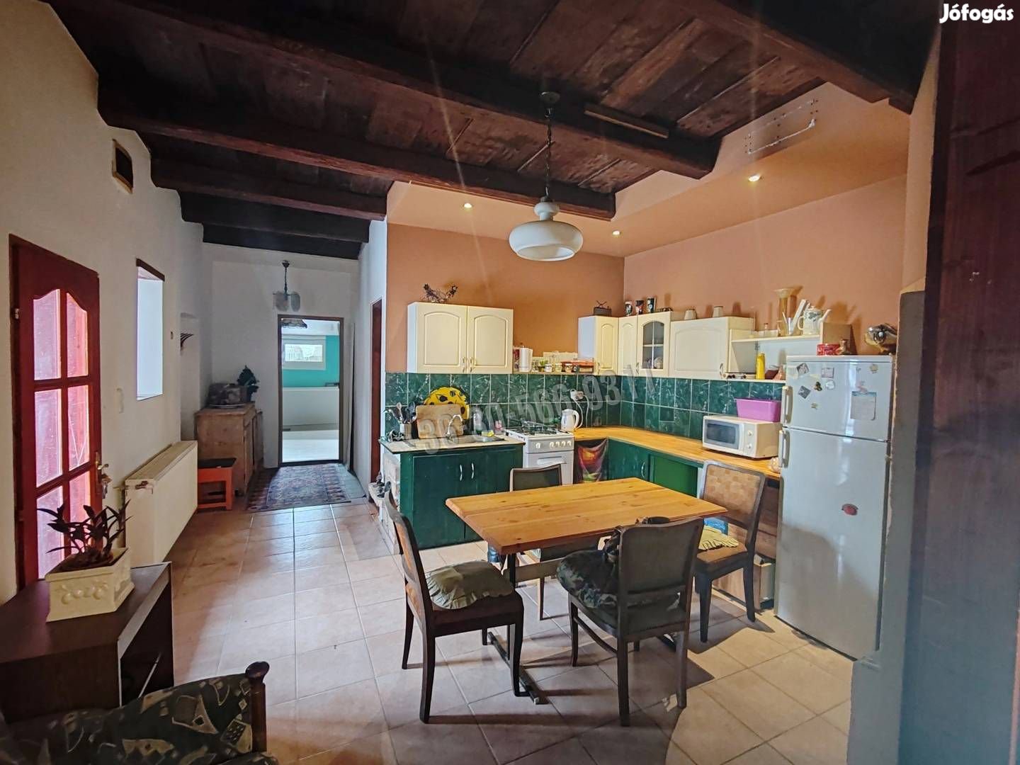 Az ingatlan hagyományos, vályogból épült, háromosztatú parasztház lehetett valamikor. Belső kialakítása miatt, mérte ellenére kényelmes élettérrel rendelkezik. A házhoz tartozó melléképületet könnyűszerkezettel helyettesítették, itt kapott helyet a kazánház és egy félszoba, amit gardróbnak terveztek, de akár berendezhető egy kis hálószobának is. Az eredeti látszógerendás födém alatt egy szép nagy hálószoba, konyha- étkezővel és egy kádas fürdőszoba kapott helyett.