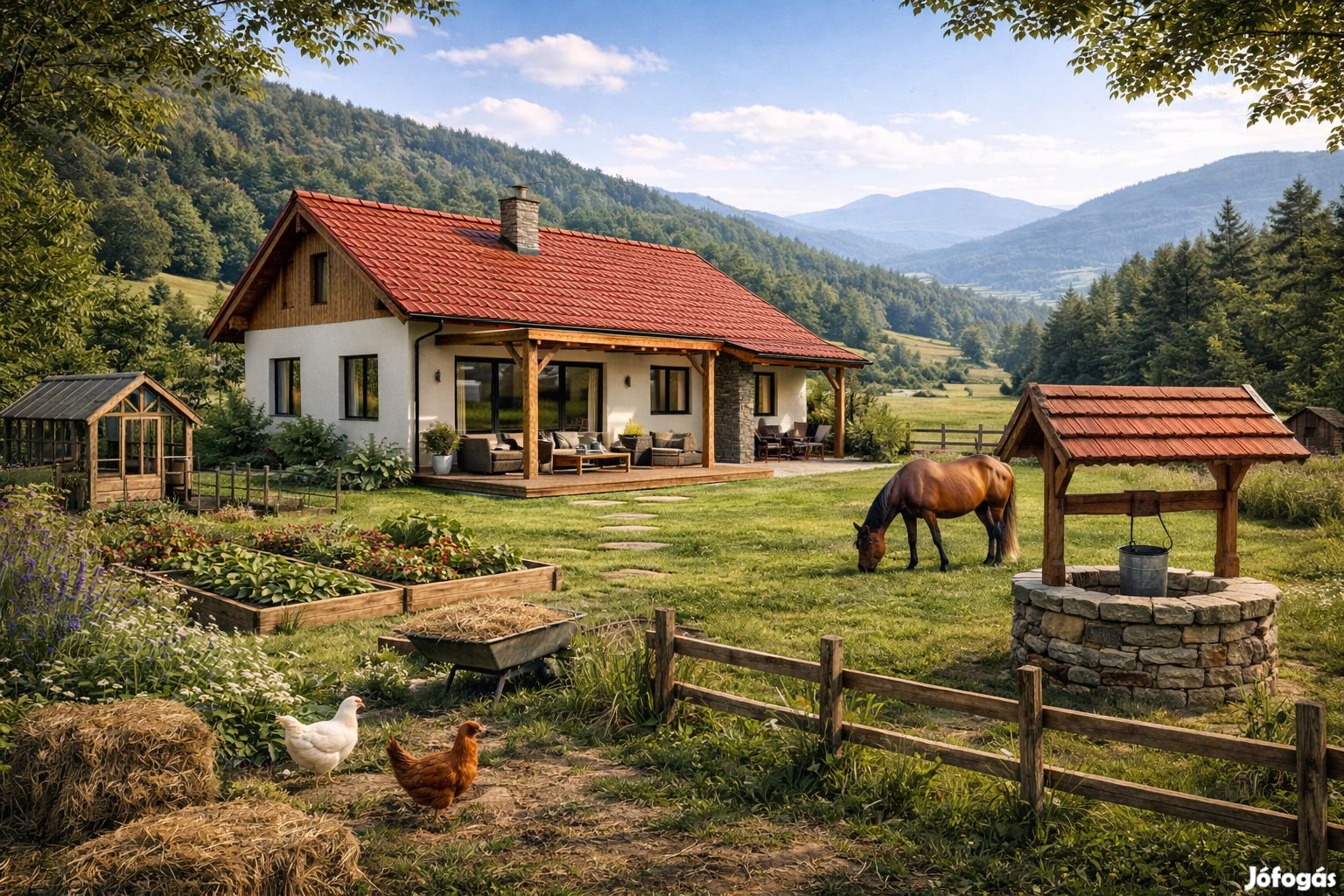 Eladó Szandán egy világtól elvonulós gyöngyszem lélegzetelállító panorámával, ajándék kiscsikóval!