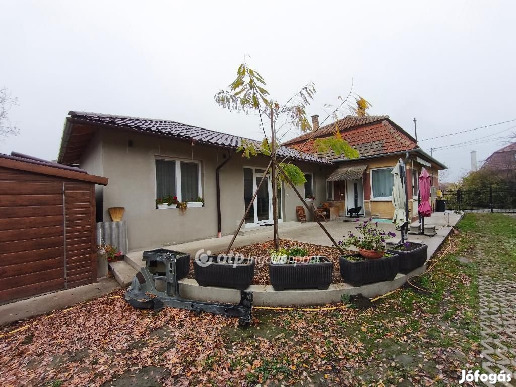 Pest vármegye, egyik legkedveltebb részén Kiskunlacházán, eladó egy 850 m2-s telken lévő, 2 generációs, téglaépítésű duplakomfortos 4 szobás összesen 121 m2-s családi ház. Az ingatlan jelenleg 2 házból áll amik egy ajtó beépítésével egybenyithatók. Az 1. ház 72 m2-s kettő szobás átlagos állapotú. Fűtése konvektorokkal, hűtő-fűtővel és kandallóval megoldott. A 2 ház pár éve épült újnak mondható. Ez a lakrész 50 m2-s , 2 szobás kiváló állapotú. Ez utóbbi fűtéséről kombi-cirkó a hűtéséről hűtő-fűtő klíma gondoskodik. Az ingatlan H tarifával és ipari árammal is rendelkezik. A nappaliból kilépve jutunk ki a nagy méretű teraszra . Az udvarban található egy dupla beállós garázs és több tároló is. A környék infrastruktúrája nagyon jó. Minden ami számít pár perc sétával elérhető. Az OTP Ingatlanpont teljes körű ügyintézéssel áll az eladók és a vevők rendelkezésére! A kínálatunkból választott ingatlan finanszírozásához kedvezményes hitel- konstrukciókat kínálunk. Az adásvételi szerződés megkötéséhez igény szerint megbízható ügyvédi közreműködést biztosítunk, és segítséget nyújtunk az adásvételhez kapcsolódó ügyek intézéséhez. Kérdés , mutatás esetén hívjon bizalommal! Ref. szám: M317486
