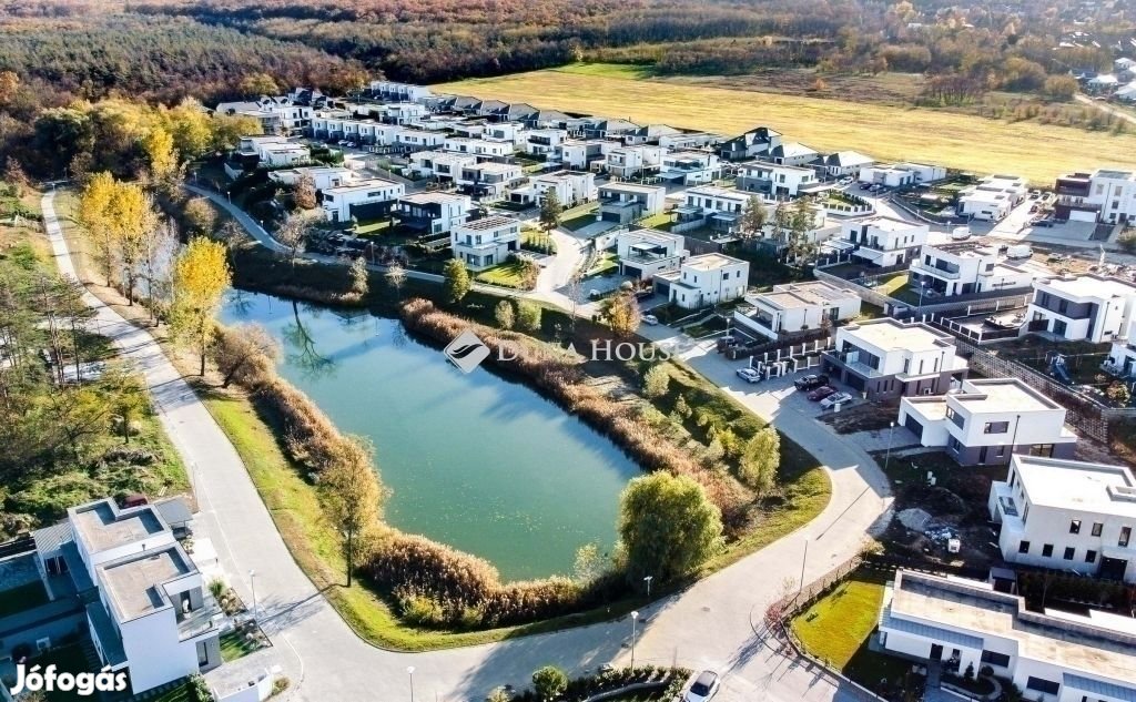 Eladó egy gyönyörű, napfényes téglaépítésű családi otthon a Sissy Villaparkban, közvetlenül a festői Puszta szentjakabi Tó partján. Az ingatlan modern hőszivattyús és fan-coil fűtési rendszerrel rendelkezik, ami a kellemes belső hőmérséklet mellett a környezetvédelmi normáknak is megfelel. A téglából épült, napfényes ház 2024-ben került átadásra, így Ön lehet az első, aki beköltözhet ebbe a prémium minőségű új építésű otthonba.A Sissy Villapark, ahol az ingatlan található, egyedülálló környezetet kínál leendő tulajdonosainak. A villapark saját erdősséggel és tóval rendelkezik, így garantálva a nyugodt, természetközeli életérzést. Az otthon nagy üvegfelületei és letisztult stílusú, nagy teraszai hozzájárulnak ahhoz, hogy a természet szépsége még közelebb kerüljön Önhöz.A villapark kitűnő választás lehet azoknak a családoknak, akik a nagyváros forgatagától ideális távolságra, mégis minden kényelmi szolgáltatással ellátott, új otthonban szeretnének élni.A villapark útjait díszkővel burkolták, és az éjszakai világítást elegáns kandeláberek biztosítják, ami még inkább hozzájárul a környék exkluzív megjelenéséhez.Ebben a festői környezetben az új otthona nem csak egy ház lesz, hanem egy olyan hely, ahol a mindennapok forgatagából kiszakadva igazán élvezheti az élet nyugalmát. A tó körüli sétány és a napozó stégek tovább növelik ezt az élményt, hiszen így a természet szépsége és a víz nyugalma mindig csak egy lépésre lesz Öntől.Az otthon árában benne foglaltatik a prémium minőségű gépesített konyhabútor és az összes, a képeken látható prémium bútor, így Önnek nem kell plusz költségekkel számolnia az álomotthona berendezésekor.Ne hagyja ki ezt az egyedülálló lehetőséget, hogy a Sissy Villaparkban, Erzsébet királyné egykori kedvelt helyénél lévő, környezettudatos és modern otthon tulajdonosa lehessen.Keressen minket bátran további részletekért és tegye meg az első lépést álmai otthona felé a Sissy Villaparkban!