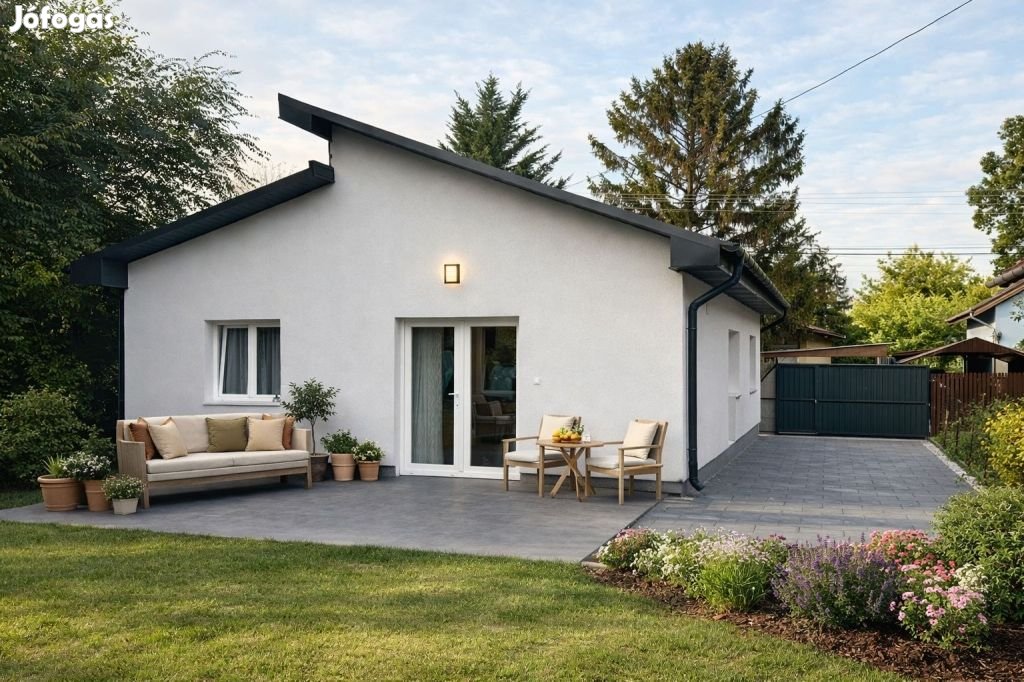 ***MODERN OTTHON SZIGETSZENTMIKLÓSON, A DUNA-PART KÖZELÉBEN!*** Szigetszentmiklós kedvelt, Duna-part közeli részén eladó egy 2024-ben épült, korszerű, nappali + 3 szobás családi ház. A 75 négyzetméteres lakótér egy 435 négyzetméteres rendezett telken helyezkedik el, amely ideális méretű ahhoz, hogy kényelmes kertet, teraszt és akár medencét is kialakíthasson. A ház központi tere a tágas, világos, amerikai konyhás nappali, melynek nagy belmagassága és hatalmas üvegfelületei különleges térérzetet és természetes fényt biztosítanak egész nap. A gondosan megtervezett alaprajz három külön nyíló hálószobát, fürdőszobát és nagy teraszt tartalmaz. A modern technológiai megoldások között megtalálható a 10 kW-os napelemrendszer, 3*25A áramerősség és a H-tarifa, amely jelentősen csökkenti a rezsiköltségeket, így az otthon nemcsak esztétikus, hanem energiatakarékos és fenntartható is. A környék csendes, családi házas övezet, mégis kiváló infrastruktúrával rendelkezik: a Duna-part pár perc sétára, boltok, iskola, óvoda, buszmegálló pedig könnyen elérhetők. Ez az ingatlan ideális választás mindazoknak, akik modern, világos és gazdaságos otthont keresnek Szigetszentmiklós egyik legjobb részén. A kínálatunkból választott ingatlan finanszírozásához kedvezményes hitel- és lízingkonstrukciókat kínálunk. Az adásvételi szerződés megkötéséhez igény szerint megbízható ügyvédi közreműködést biztosítunk, és segítséget nyújtunk az adásvételhez kapcsolódó ügyek intézéséhez. Amennyiben felkeltettem érdeklődését, keressen bizalommal, akár hétvégén is. Referenciaszám: M320767