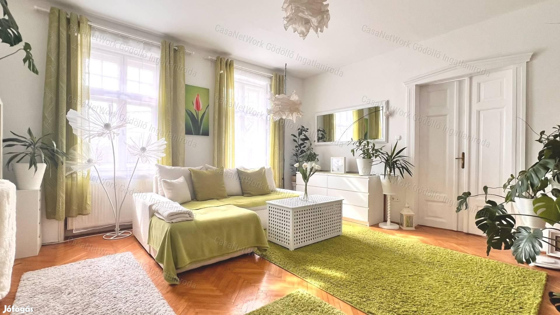 CasaNetWork Gödöllő Ingatlaniroda kínálatában eladó téglalakás az ANTAL-HEGY ÖLELÉSÉBEN. TÜNDÉRI LAKÁS AZ EGYKORI  GYERTYAÖNTŐ ÉPÜLETBEN. Ajánlom a természet szerelmeseinek, akik a városközpont forgatagát és zaját kerülve szeretnék tölteni mindennapjaikat. Csendes mellék utcában, a máriabesnyői Bazilika közelében található egyedi, vintage stílusú otthont kínálok. Kisszámú társasház, 1. EMELETI, tágas, napfényes lakása, saját KIZÁRÓLAGOS KERTHASZNÁLATTAL. Az épület történelmet ír, a lakás megőrizte polgári jellegét nagy belmagasságával, gyönyörű eredeti fa ajtókkal, ugyanakkor harmonikus, de modern lakberendezéssel, és felújított műszaki megoldásokkal.  Két tágas szobája külön bejáratú, de átjárható egyben.  A lakás a hozzá tartozó lépcsőházból közelíthető meg. A padlástér jól használható tárolásra. A modernizálás során korszerű kondenzációs kazánt szereltek be, a villanyhálózatot cserélték,  és egy hűtő-fűtő klíma került beépítésre.  Megőrizték a működő cserépkályhát, ami klasszikus hangulatával emelheti az otthon melegét.  Az ingatlan tehermentes, rendezett tulajdonosi háttérrel.  A buszmegálló pár lépéssel, a vonatállomás rövid sétával elérhető. Ingyenes hitel tanácsadással, ügyvédi kapcsolattal és rugalmas időbeosztással állunk kedves ügyfeleink rendelkezésére! CASANETWORK - Ingatlanban otthon vagyunk
