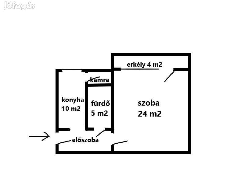 1 db 24 m2-es szoba (csak szekrénysor van, minden mást hoznia kell!),