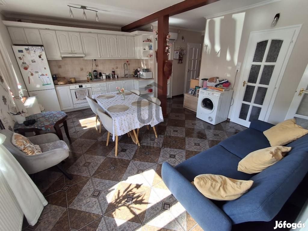 Cegléden, csendes kertvárosi környezetben eladó egy 84,6 m-es földszinti, bútorozott lakás, amely 2000-ben épült, és praktikus elrendezésének köszönhetően akár két generáció együttélésére is kiváló választás.