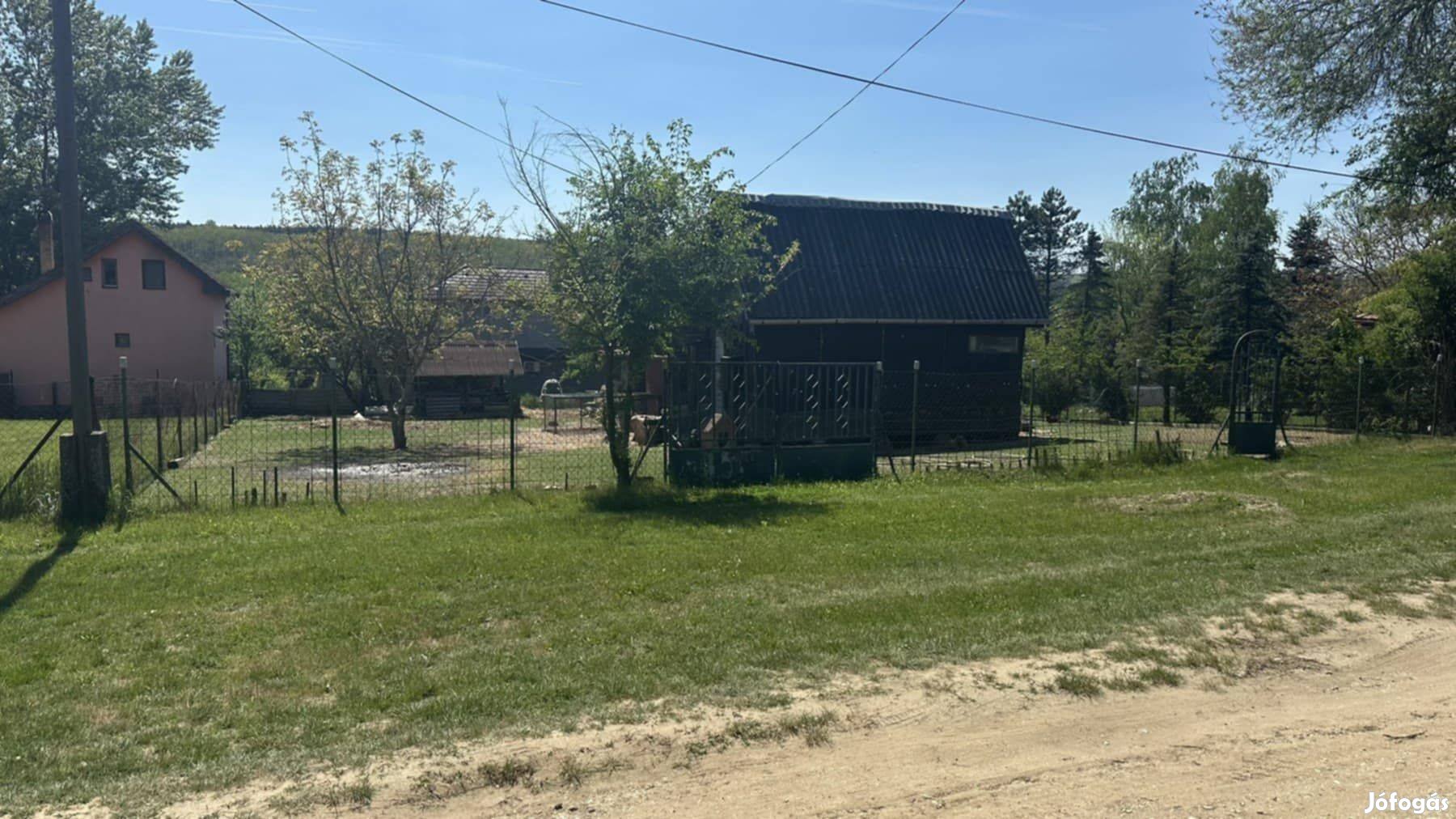 Domonyvölgyben festői környezetben 800 nm bekerített telek eladó faházzal. Vezetékes víz ,villany a telken .