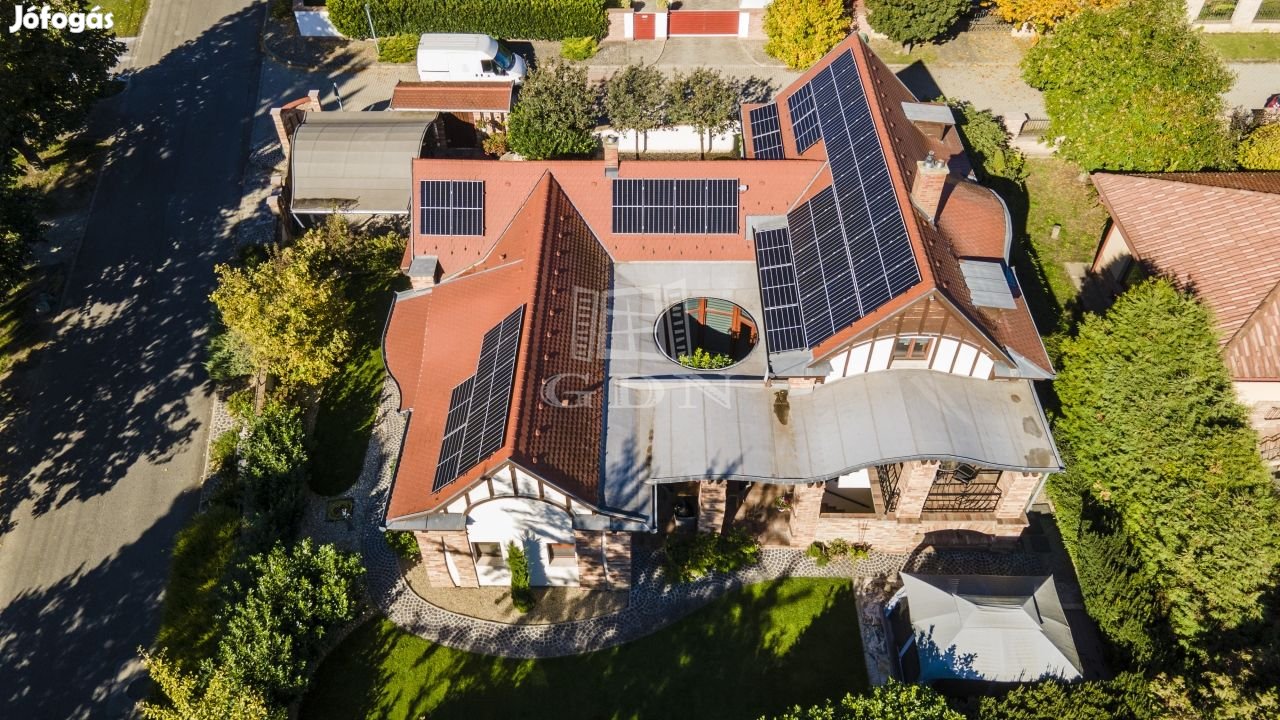 Az ház 2016-ban épült a legjobb minőségű anyagok felhasználásával. Rendelkezik kamerás kaputelefonnal, könyvtár galériával, átriummal ahová bazalt kockás járdán juthatunk el vagy éppen az étkező nyitható üvegajtaján.