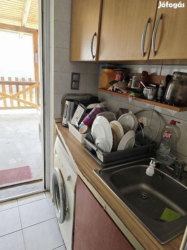 Jelenleg 2 lakrész van kialakítva, egyenként 1 szoba, konyha, fürdőszoba, de könnyen összenyitható.