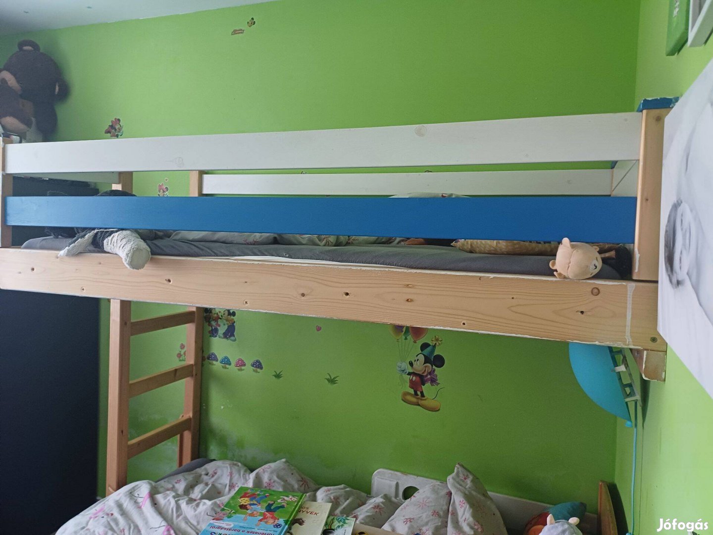 Költözés miatt eladóvá vált szeretett emeletes ágyunk, amit két kisfiunk használt. Az ágy külön is felállítható, mivel az elemek nincsenek összerögzítve használható emeletesként vagy két különálló ágyként is. Felnőttet is elbír, olyan masszív.