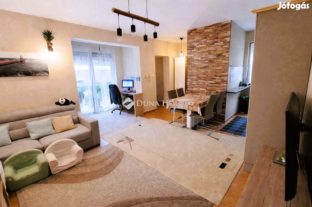 Gyömrő kertvárosias részén, az Eskü tér közelében eladó egy 2008-ban épült, belső kétszintes, 73 nm-es ( + terasz 12 nm + erkély 6,76 nm) világos, tágas lakás, 200 nm-es, kizárólagos használatú kerttel.
