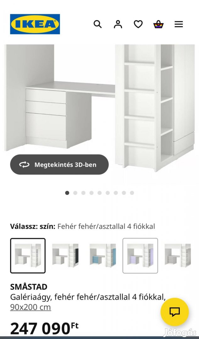Alig használt Smastad garnitúra eladó. Ágy, asztal, ruhásszekrény és polc a játékoknak, könyveknek egyben. Teljes mérete 160x205x182 cm. Megtekinthető Vácon, szerelésben szállításban megegyezés szerint tudok segíteni.
