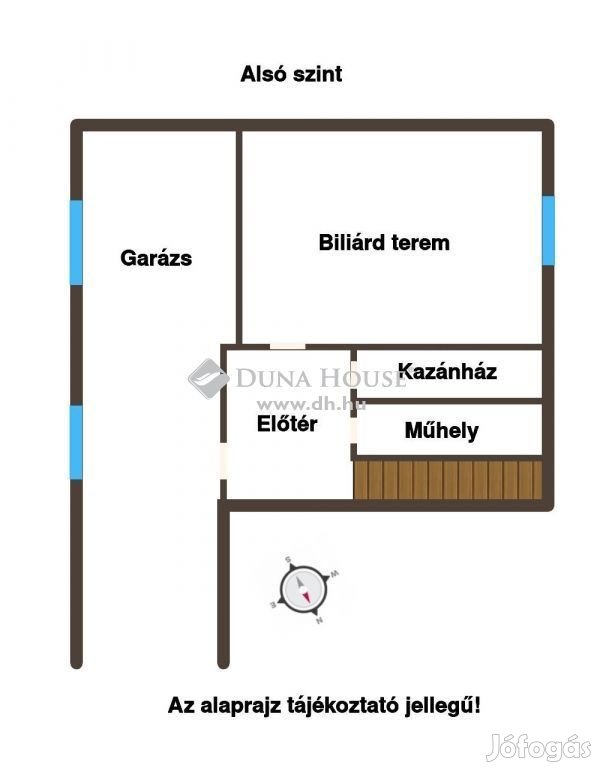 Hobbi-/biliárdszoba (30 m), műhely (5,2 m)