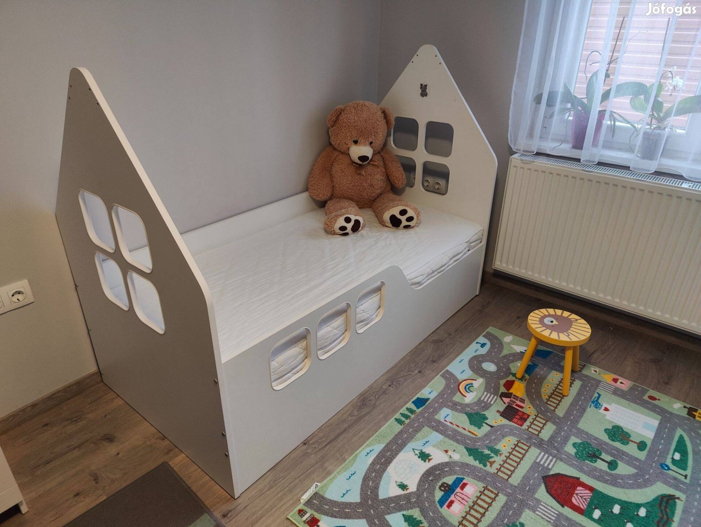 - Házikó alakú ágy ablakokkal