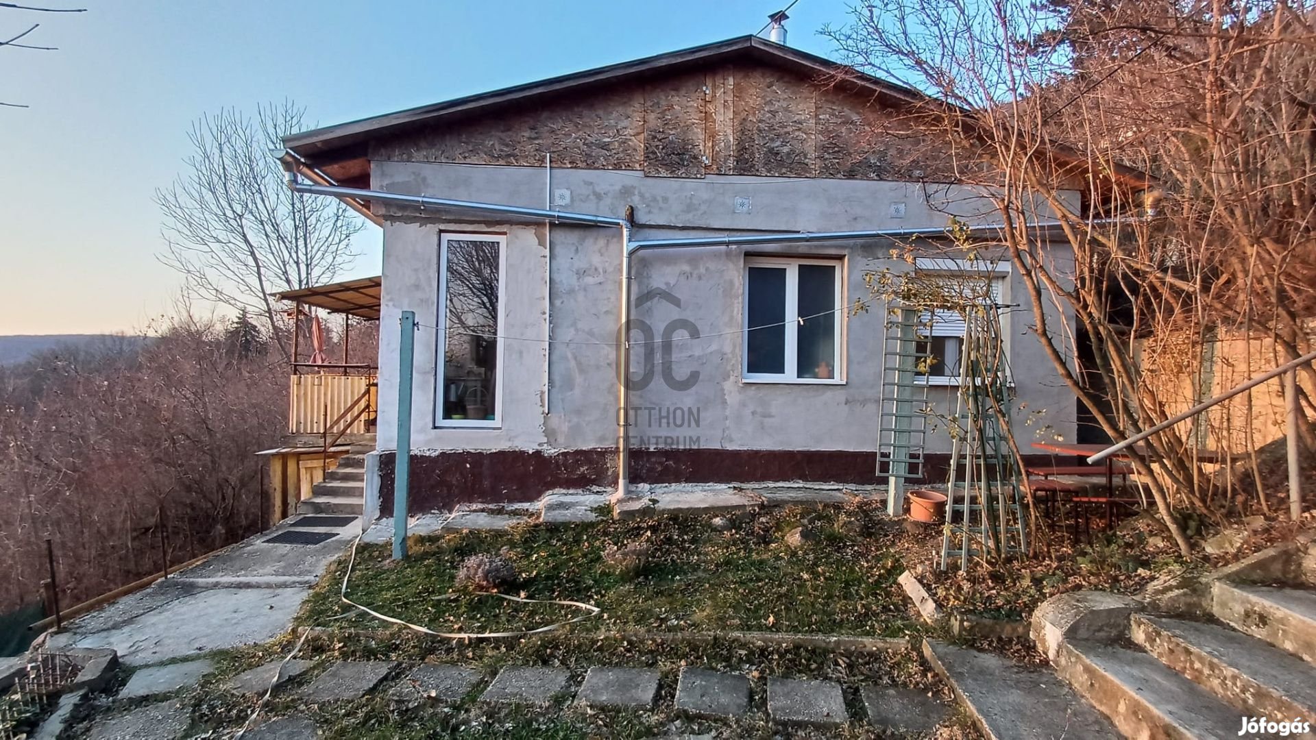 Verőce egy egyedi kilátást nyújtó részén eladó egy 40nm-es - 6nm-es terasszal - nyaraló - a tulajdoni lap szerint lakóépület. Az épület 1 szoba, hálószoba, elószoba, konyha, fürdőszoba WC helyiségekból áll. A ház jó műszaki állpotban van azonban ízlés szerint felújításra szorul. Az ingatlan még egy 1124nm-es lejtős telekből áll és tartalmaz egy zárt garázst. A köútról egy lejtős, betonozott út vezet az ingatlanhoz. A tulajdonost az egyik képen szereplő kilátás várja, DNY kilátás, élvezheti a naplementét. Az ingatlanban víz villany be van vezetve, a melegvizet a padlástérben levő villanybojler stolgáltatja, a meleget vegyestüzelésű kályha szolgáltatja. Azoknak ajánlom akik értékelik az egyedi kilátást, a nyugalmat, és van fantáziájuk a felépítmény saját ízlés szerinti átalakításához.
