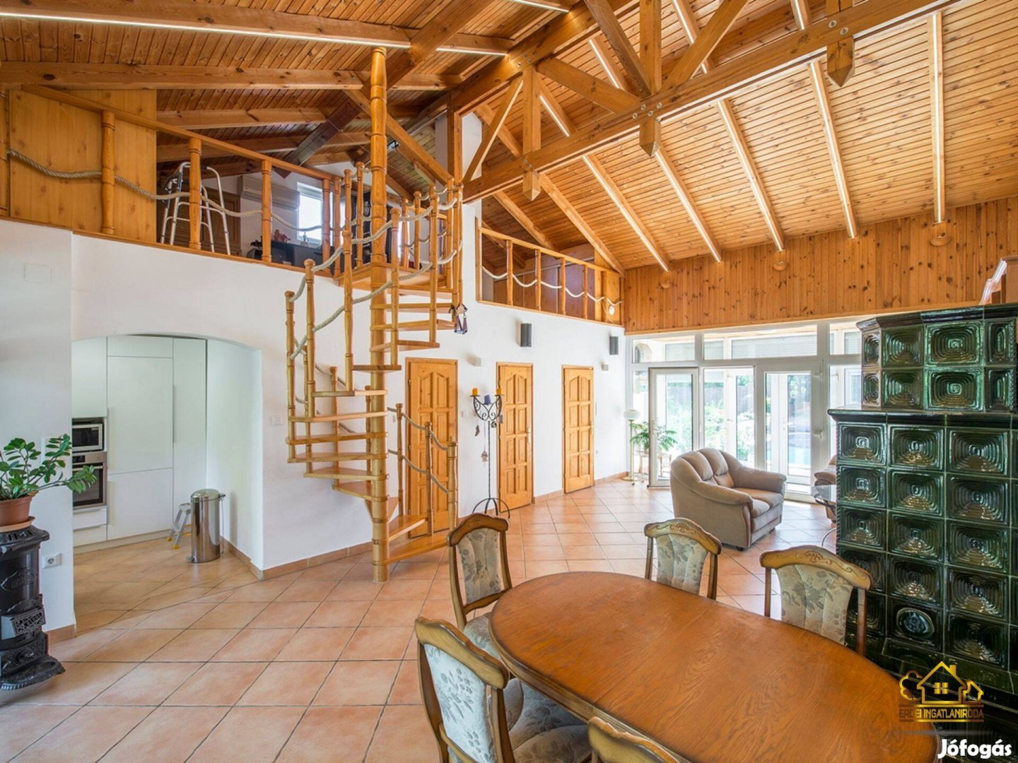 Galériás, világos tágas nappali, hangulatos cserépkályhával, hálóval, fürdő- és külön toalettel. Külön említem, a konyha letisztult eleganciáját.
