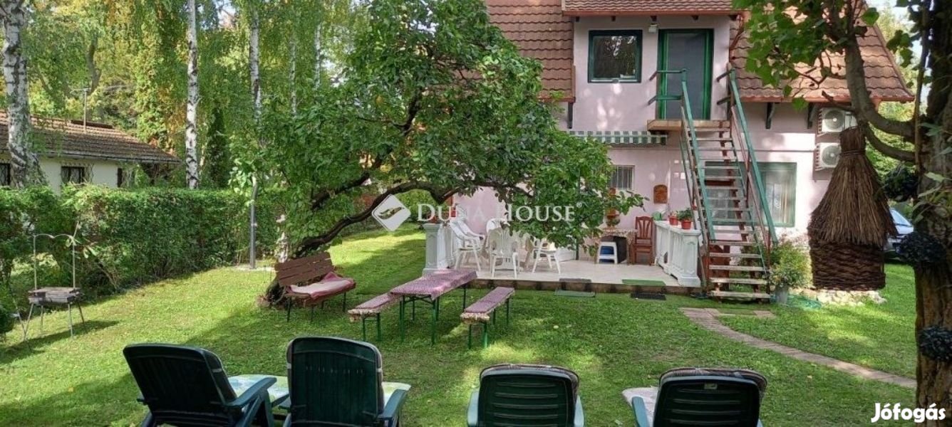 Balatonföldváron, a Keleti Strandtól nyolcszáz méterre, közel a centrumhoz, csendes, szép környezetben BALATONI NYARALÓ eladó!A házat 1955-ben téglából építették és folyamatosan karban tartották, a tetőteret 2004-ben beépítették, ekkor a tető új cserép fedést kapott.Fa nyílászárókon szúnyogháló, redőny és reluxa lett felszerelve.A fűtés, a földszinten gázkonvektorral, és hűtő- fűtő klímával, a tetőtérben klímával megoldott.Az önálló ház alsó szintjén kettő szoba, konyha, fürdőszoba - wc, egy 12 nm-es fedett- és egy 16 nm-es nyitott, nagy terasz, a külön bejáratú felső szinten 2 szoba, nappali-étkező, konyha sarok, fürdőszoba - wc lett kialakítva.A 727 négyzetméteres, fáktól övezett kertben szaletli, egy 6 nm-es faház mely tárolóként funkcionál,ezenkívül még egy bográcsozó és grillező is található.Az udvaron több autó parkolására is van lehetőség.Amennyiben felkeltettem érdeklődését, várom megtisztelő hívását.