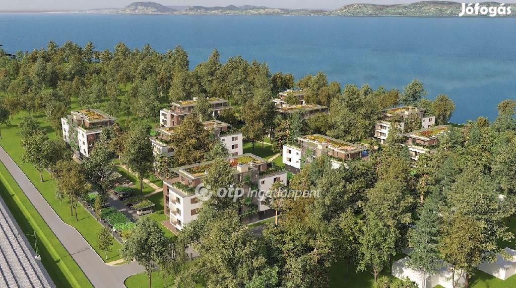 Balaton Déli part, Balatonszemes, közvetlen vízparti, 90 m2 lakás eladó. Az ingatlan a Balaton egyik legszebb vízparti lakóparkjában, természetes zöld környezetben található. A környezettudatosan épült, panorámás kilátást nyújtó, modern épületek esztétikailag és a fenntarthatóság szempontjából is kiemelkedőek, egyszerre biztosítják a kényelmes otthont és a balatoni életstílust. A különböző lakástípusok lehetőséget adnak arra, hogy minden lakó megtalálja a számára tökéletes otthont, akár az Otthon Start Hitelprogram keretében is. A földszinti lakások terasszal és kertkapcsolattal rendelkeznek, az épületek felső emeletén penthouse lakás került kialakításra. Ehhez a 77 m2-es 1. emeleti lakáshoz kis tároló és két, összesen 26 m2 erkély tartozik. A lakópark nem csak elhelyezkedése miatt egyedi, minden egyes lakás a legújabb intelligens technológiával, magas minőségű és igényes alapanyagokkal, prémium extrákkal kerül kialakításra. Egyszerre komfortosak és energiahatékonyak: elektromos redőnyök, szúnyogháló, egyedileg vezérelhető hőszivattyús, fan-coilos hűtési és fűtési rendszer, okosotthon rendszer, beléptető rendszer, riasztórendszer. Az ingatlan értékét növelik a következő szolgáltatások: a területen kialakított gondnoki, üzemeltetési iroda; zöldterületbe illesztett játszótér; zárt, privát vízpart több, mint 130 méteren; partmenti stég; közel 120 m2 vízfelületű strandmedence 16 m2-es gyermekpancsolóval; automata öntözőhálózat a lakóépületek közötti zöldfelületek öntözésére. OTP Ingatlanpont és Pénzügyi Pont irodánk teljeskörű támogatást nyújt az ingatlan kiválasztásával, megvételével, biztosításával és finanszírozásával, akár egyedi kedvezményes hitelekkel, befektetési lehetőségekkel kapcsolatban is. Bővebb információért keressen telefonon!