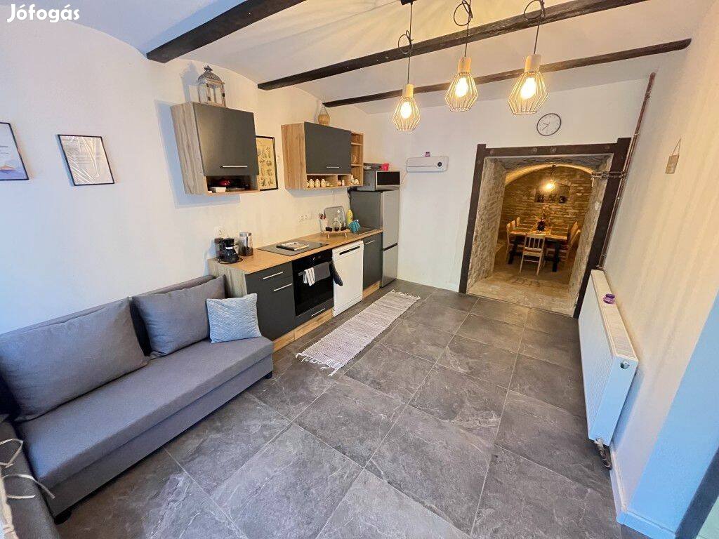 Kaposkeresztúron a Harmatvölgyben jelenleg vendégháznak kialakított 51 m2-es, zártkerti ingatlan teljes berendezéssel eladó. Az ingatlan alsó szintjén (22,5 m2) nappali-konyha-étkező, fürdőszoba, 12 m2-es pince, felső szinten 16,5 m2 szoba helyiségek találhatóak. A 2 db helyrajzi számon nyilvántartott teleken, rengeteg növény és gyümölcsös (3 db fehér eperfa, 3 db meggyfa, 3 db alma, málnabokrok, fekete szeder, ribizli, 6 parcella szőlőültetvény) találhatóak. Az épület 10 cm. külső szigetelést kapott, 32 A. villany lett kiépítve, fúrt kúttal történik a vízellátás, de nincs bevizsgálva, a meleg vizet villanybojler biztosítja, a fűtés vízteres kandalló által radiátoros fűtéssel és villany fali fűtőventilátorral megoldott, riasztó és kamera rendszer van telepítve, a TV és internet szolgáltatás Yettel hálózattal megoldva. A ház felett található egy 30 m2-es présház pincével, 2 db fatároló, a dombtetőről gyönyörű kilátás. A tulajdonosok a vendégházat 1,5 éve üzemeltetik, hamarosan készül hozzá egy weboldal is, amelyet oda adnak a vevőnek Telek: 2.089 m2 Energetikai besorolás: E
