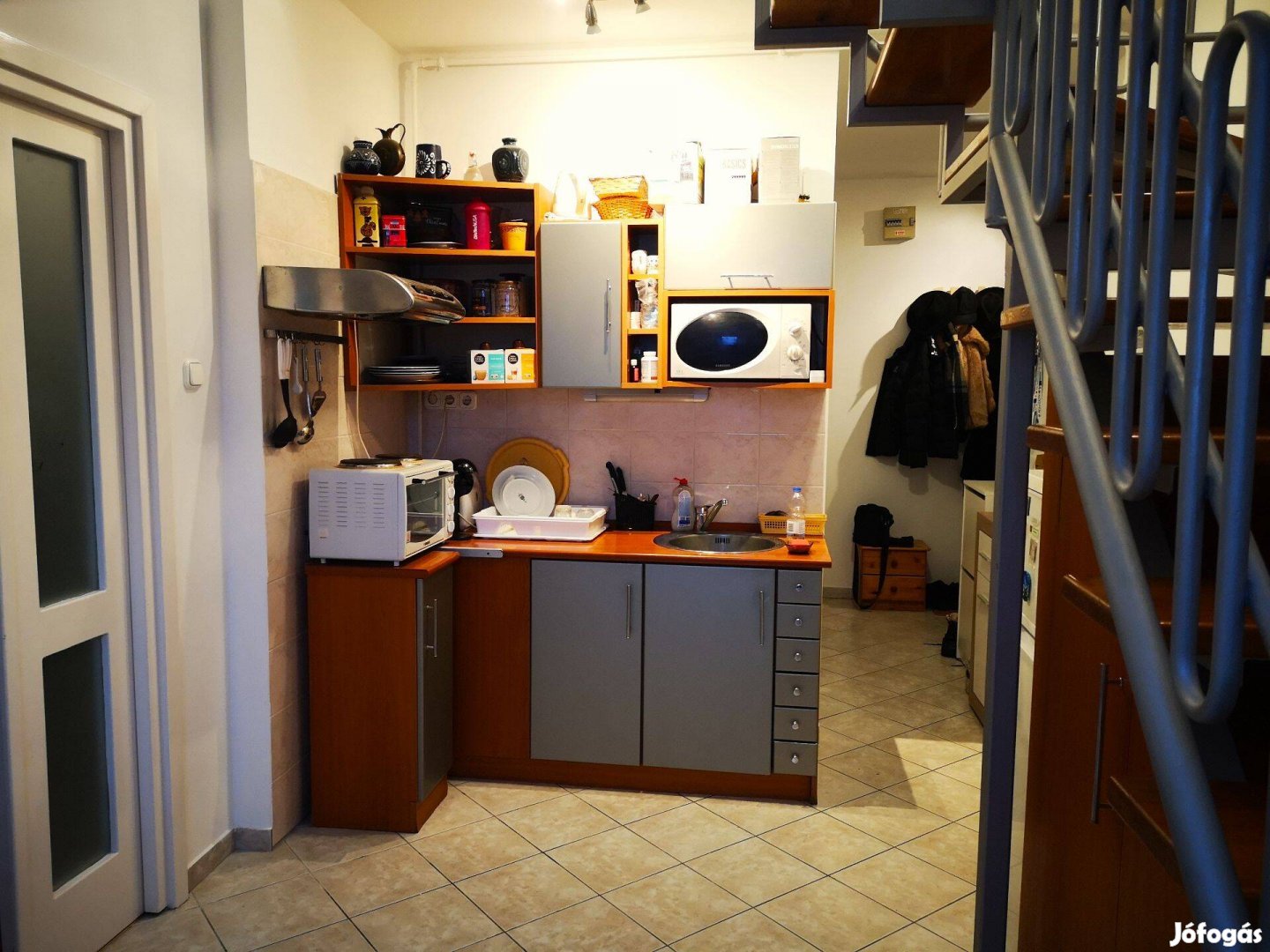 A galériás lakás földszintjén egy konyha-étkező, egy zuhanyzós fürdőszoba WC-vel, egy gardrób helyiség, és egy szoba van, az emeleten egy kisebb előtér, egy szoba, és egy fürdőkádas fürdőszoba, szintén WC-vel.