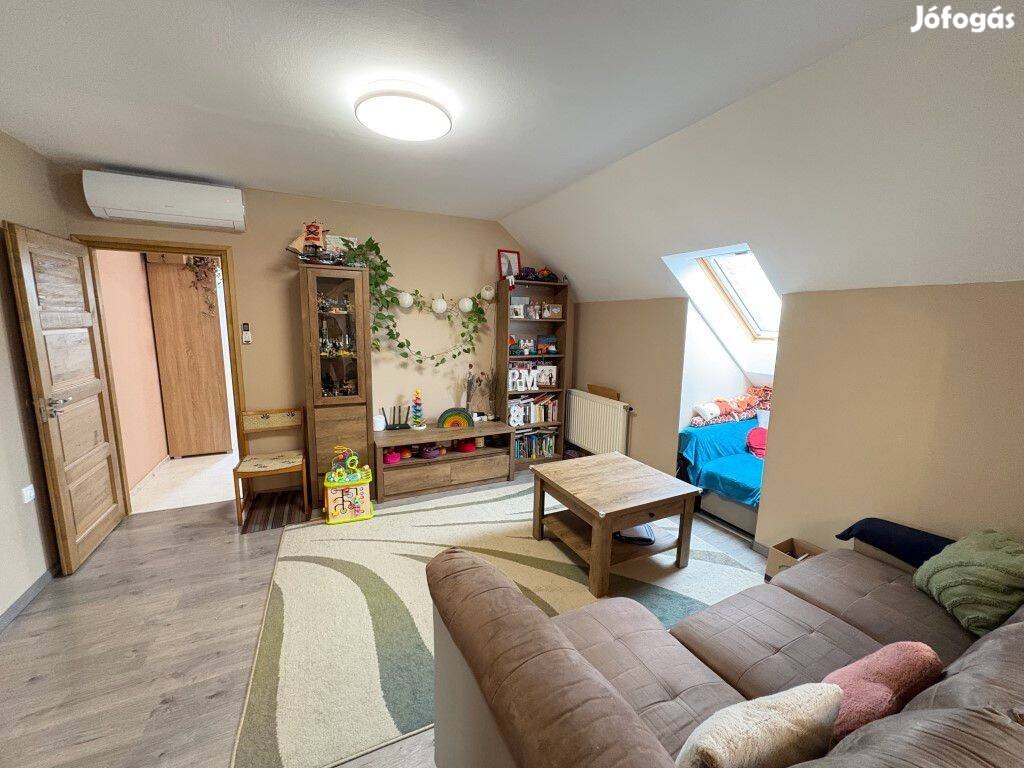 Kaposváron a Jutai úton, hangulatosan kialakított és felújított 87 m2-es tetőtéri lakás eladó. A lakásban előszoba, étkező-konyha (beépített Bosch és Zanussi gépekkel)-nappali, 3 félszoba, közlekedő, fürdőszoba, wc helyiségek kerültek kialakításra, a rezsije nagyon kedvező, a fűtése és melegvíz ellátása kombi Ariston kazánnal megoldott, valamint 2 db légkondicionáló is felszerelésre került. Az épület előtt a parkolás ingyenesen lehetséges.(980) Amennyiben az ingatlan felkeltette az érdeklődését, kérem hivatkozzon a 980. számú ajánlatra! Irodánk címe: 7400 Kaposvár Irányi D. u. 9