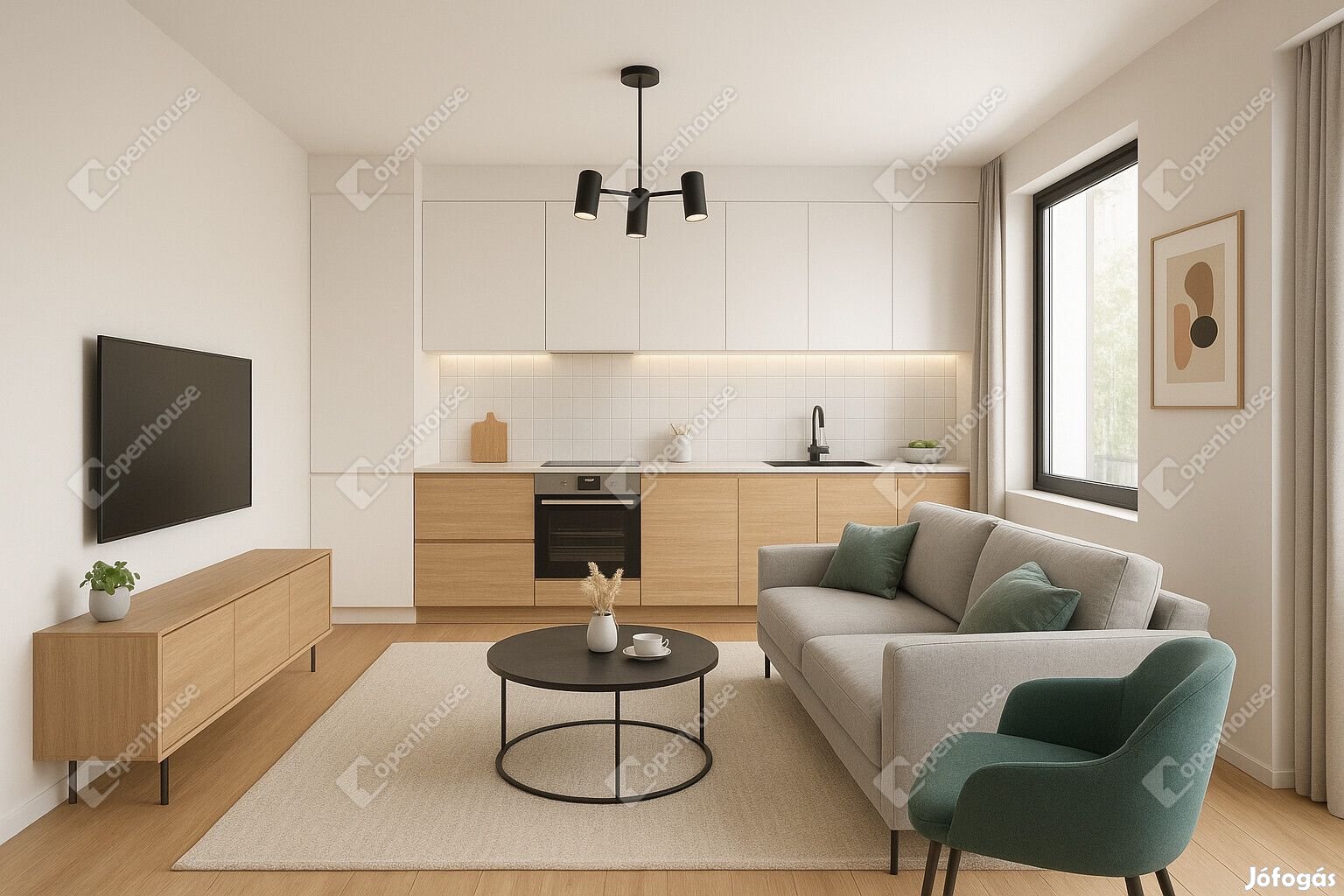A lakás berendezett képei látványtervek, melyek illusztrálhatják az elrendezést.