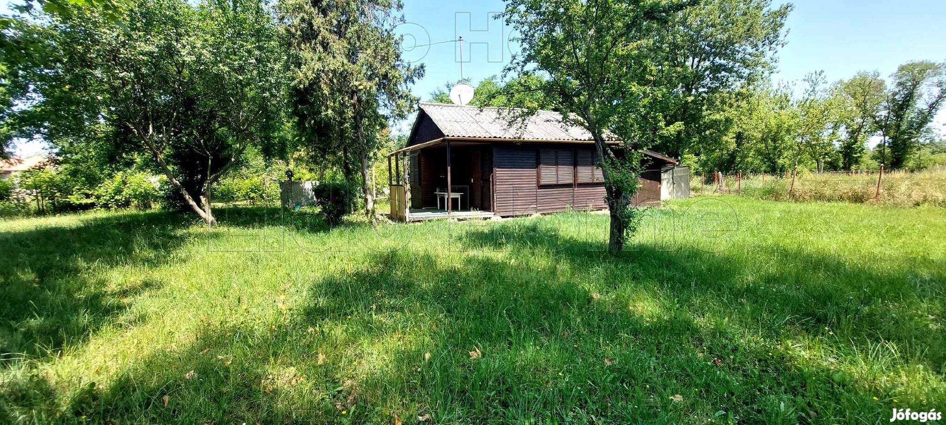 -A telken található egy szabány 27 m2-es faház, garázzsal és egy melléképület.
