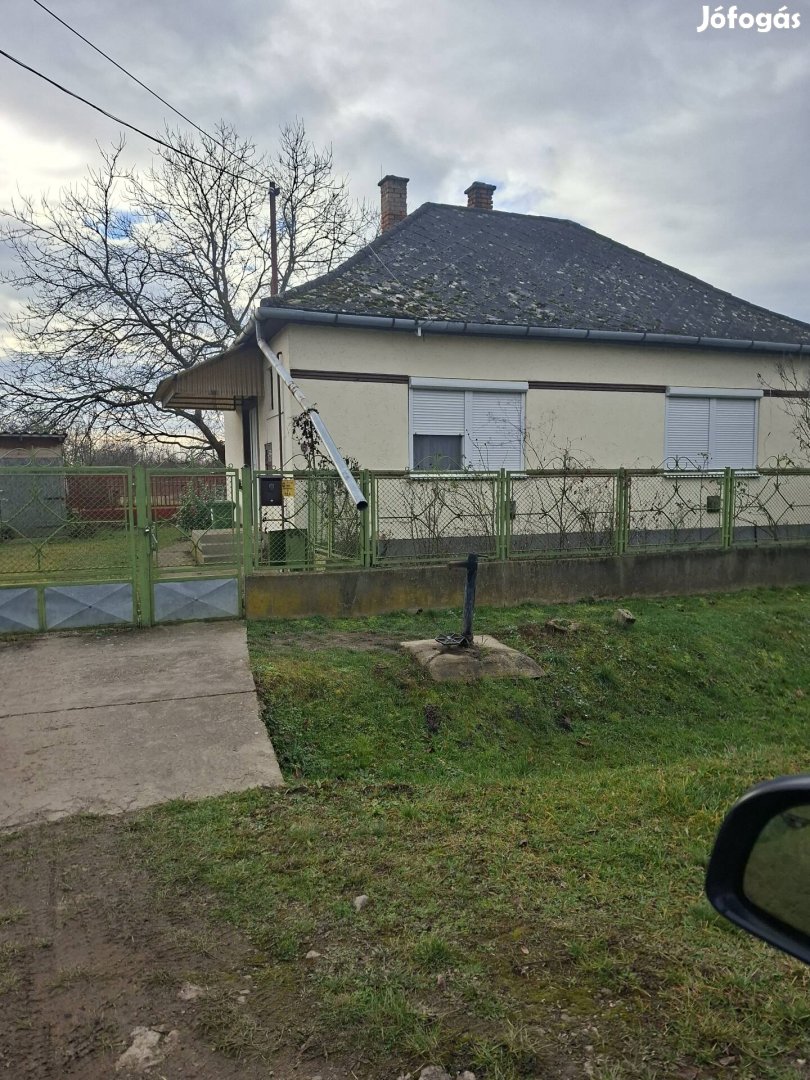 Családi ház eladó két nagy és egy fél szobával valamint fürdőszobával.Az i gatlan mögött található még egy nyárikonyha és kettő fészer.