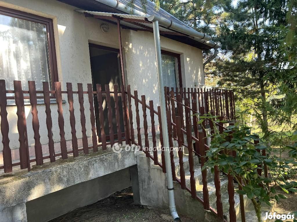 Eladó hétvégi ház Sóstóhegy szélén! Nyíregyháza közigazgatás, külterületén 1.522 m2 területnagyságú ingatlanon két szintes, szintenként 35 m2 alapterületű, szoba, konyha, étkező, zuhanyzó, előtér, terasz, pince helyiségekből álló, engedéllyel épület, térképmásolaton feltüntetett, sávbeton alapozású, szilikát főfalakkal és tégla válaszfalakkal megépített nyeregtetős, kisméretű palafedéssel épület, gázkonvektor fűtéses, - kis ráfordítással lakhatóvá tehető - gazdasági épület. Gáz, villany a házban, vezetékes víz az udvarban található.