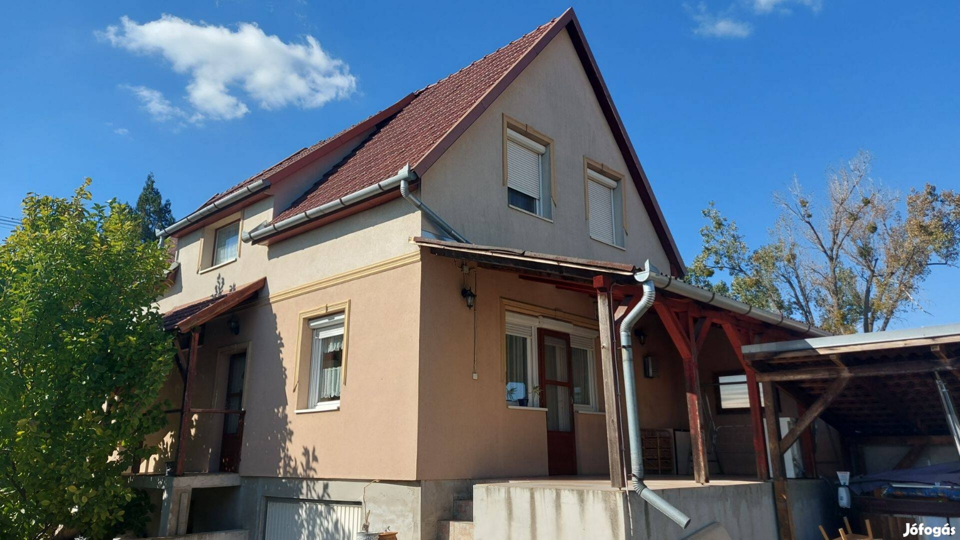Az ingatlan 1992-ben épült, szilikát főfal, tégla válaszfal, tetőn cserép fedés. Fűtése gázközponti fűtés, vegyes kazán, épített vízteres kandallóval kiegészítve. A ház tágas, világos, körbejárja a nap, K-NY tájolású. Az ingatlan elosztása - földszint 75 m2, a tetőtér 52 m2, tehát a hasznos fűtött terület 127 m2 + a pince 75m2, ahol helyett kapott egy garázs, kazánház, tároló, valamint egy terasz 18 m2, 2 erkély és egy 21 m2-es fedett tároló .Az ingatlant jelenlegi tulajdonosa építette, és az elmúlt 10 évben folyamatosan újította fel. Külső szigetelést kapott, 10 cm, az alap is szigetelt, 5 cm, műgyanta alapú, mosható Megas nemesvakolattal, műanyag ablakok kerültek beépítésre, redőnnyel szerelve, klíma a tetőtérben. A villanyvezetékek is bővítésre kerültek, 32A a terhelhetőség. A lenti fürdő a tavalyi évben került felújításra, a fenti fürdő 10 éve. A vízteres kandalló 12 éve épült. A konyha-előszoba is ekkor kapott új járólapot, illetve a konyhabútor is ekkor készült. Az elrendezés jó, nagy nappali 28 m2, nagy konyha , spájz, előszoba, 2 fürdőszoba, alul külön a wc, a tetőtérben együtt a zuhannyal a wc, a tetőrben 3 hálószoba, de akár egy 4.szoba is kialakítható, gardrób. A terasz mellett egy 21 m2-es fedett pihenő is található, kemencével, dézsával, -a dézsa nem a ház része, -mely a bulizások színtere volt. Az udvar részben térkövezett, fúrott kút segíti az öntözést. A belváros 5 percre gyalogosan, autóra sincs szükség. Az ingatlan a kórház, a rendelők, gyógyszertár, a Gimnázium közelében, a Bercsényi utcában található. Üzletek, Alfi, buszmegálló 200-300 méterre. A konyha Bosch gépekkel szerelve-mosogatógép, beépített villanysütő, beépített gáz főzőlap - az árban benne van! Az ingatlan azonnal költözhető!!!