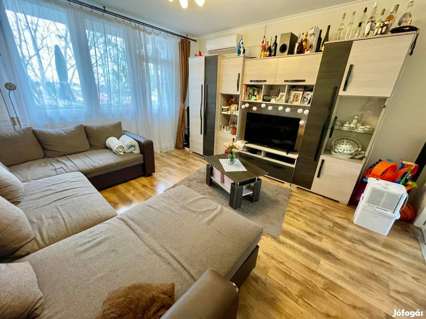 - Korszerűsített: A lakás modern műanyag nyílászárókkal felszerelt, melyek részben redőnyözöttek.