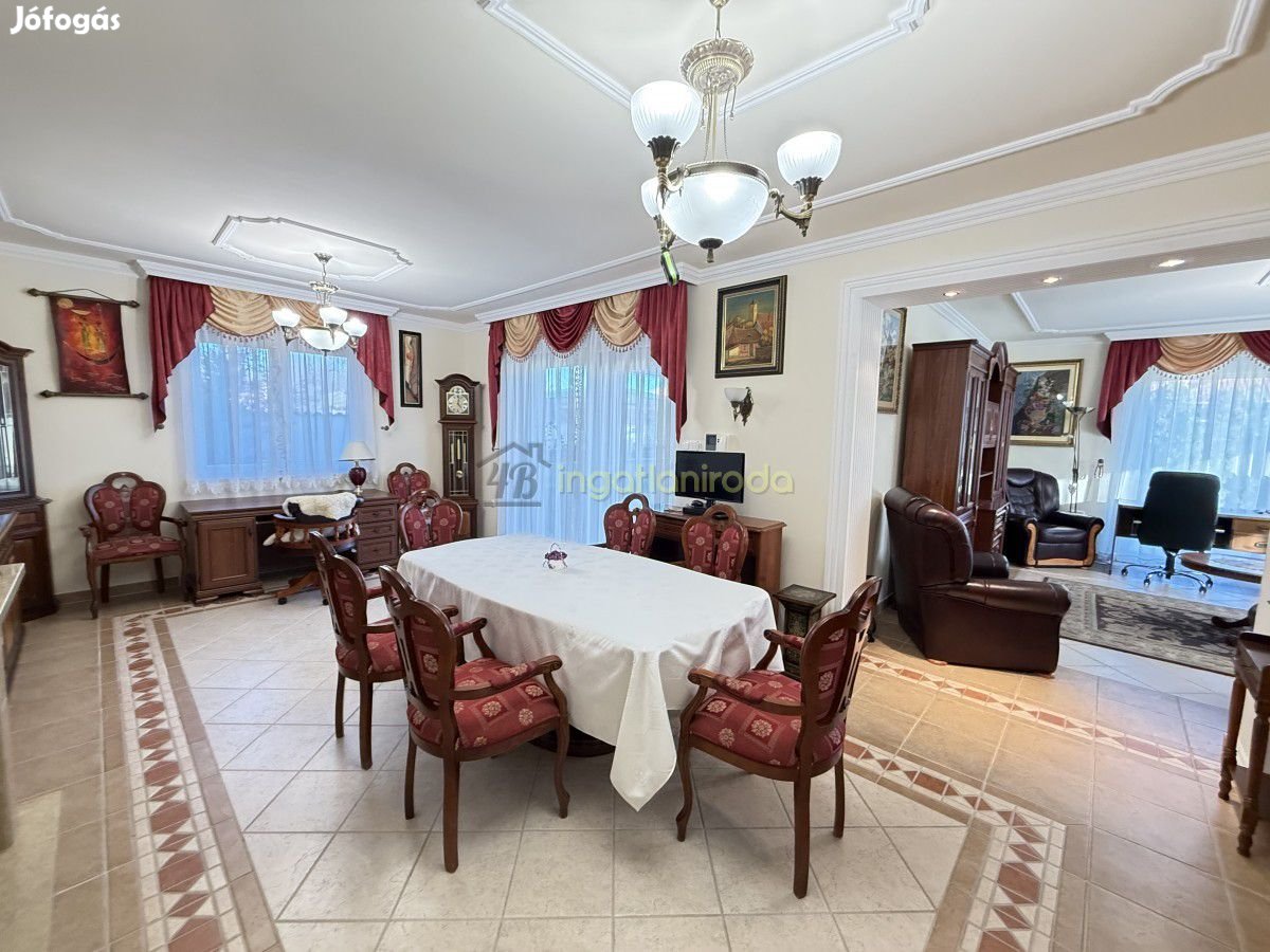 Nyíregyháza kedvelt városrészében a Mömax közelében kiadó ez az igényes, 4 hálószobával , 2 fürdőszobával rendelkező, nappali étkezős, szaunával rendelkező, teljesen berendezett, gépesített, családi házat 40 m2-es fedett terasszal, 2 állásos garázzsal, parkosított, öntözőberendezéssel ellátott kerttel..A földszinten található egy előszoba, nappali-étkező szervesen kapcsolódik egymáshoz, egy külön konyha fürdőszoba zuhanyzóval és masszázskáddal, külön wc, mosókonyha, kamra, fedett teraszAz emeleten tágas előtér, 3 hálószobával, zuhanyzós fürdőszobával, és egy szauna helyiséggel, finn szaunával.Műszaki tartalom:- Tégla építésű, hőszigetelt, hőszigetelt műanyag nyílászárók, beépített redőnyök a földszinten a nappalis és az étkező nyílászárókon a redőnyök elektromosak.Fűtéséről egy Vaillant kombi gázkazán padló és radiátor fűtéssel valamint a nappaliban kialakított kandalló valamint nagy teljesítményű hűtő-fűtő klímák gondoskodnak.A ház 10 kw-os napelem rendszerrel felszerelt..Az ingatlan azonnal költözhető, Bérletti díj. 600.000,-Ft/hó+rezsi+ 2 havi kaució.Közvetítési díj: fél havi bérleti díj:Irodai azonosító. 10285 4BIngatlaniroda ingatlan azonosító: 10285