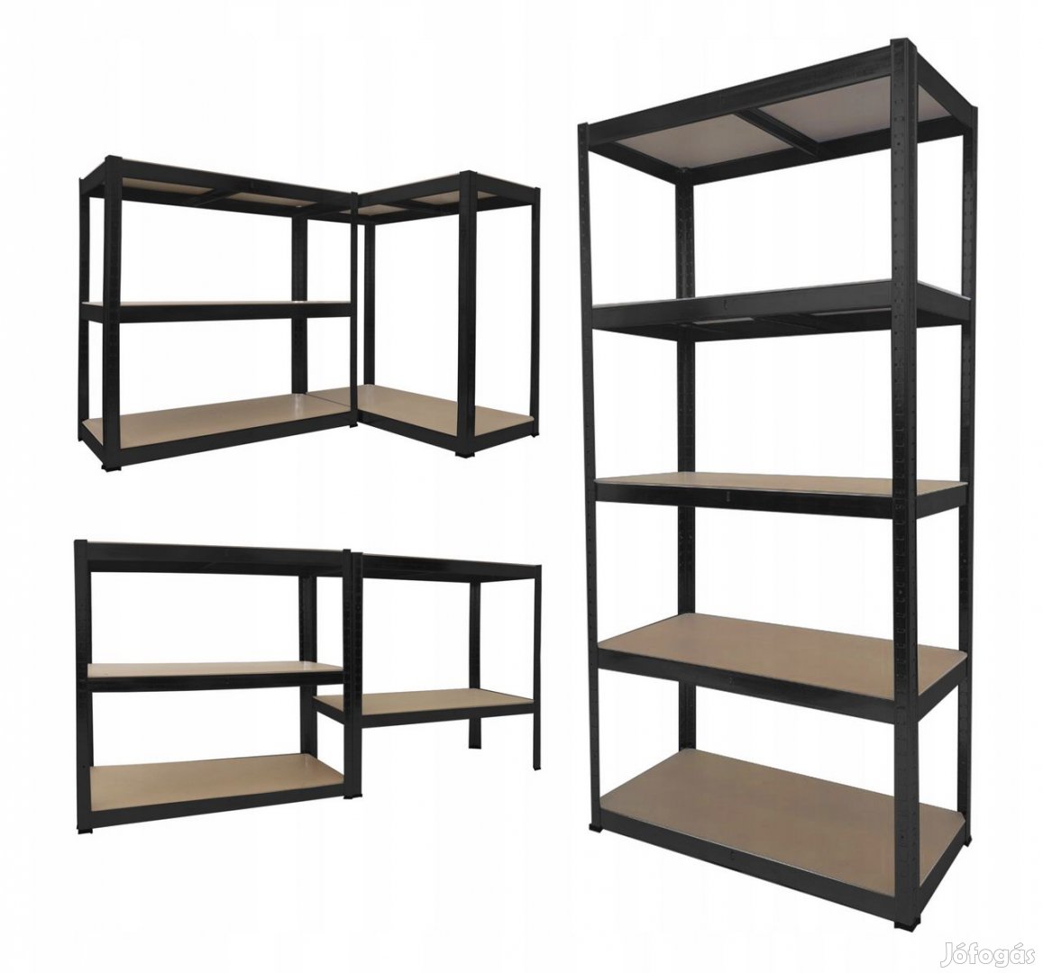 Sarok salgó polc, 5 szintes 180x70x40-40cm, feketeKiegészítő polcok:2db extra polc kerettel, 90x40cm, feketeÍgy is ismerheti: 5 polcos salgó, csavarozás mentes salgó, MDF lapos salgó, 1800x900x400mm