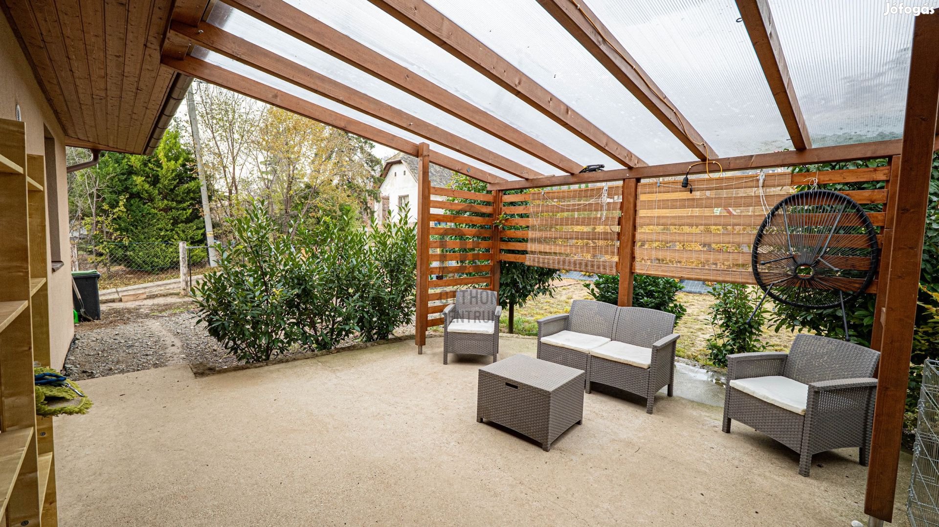 A tágas teraszon, illetve a telken található fedett teraszon egy nagyobb baráti összejövetel is könnyedén megszervezhető.