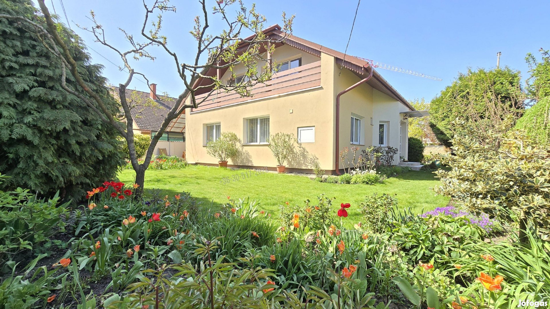 A kertet hozzáértő tulajdonos és szakemberek parkosították , így automata locsolórendszer, gyepszőnyeg, gyümölcsfák, különböző virágok és cserjék is helyet kaptak.